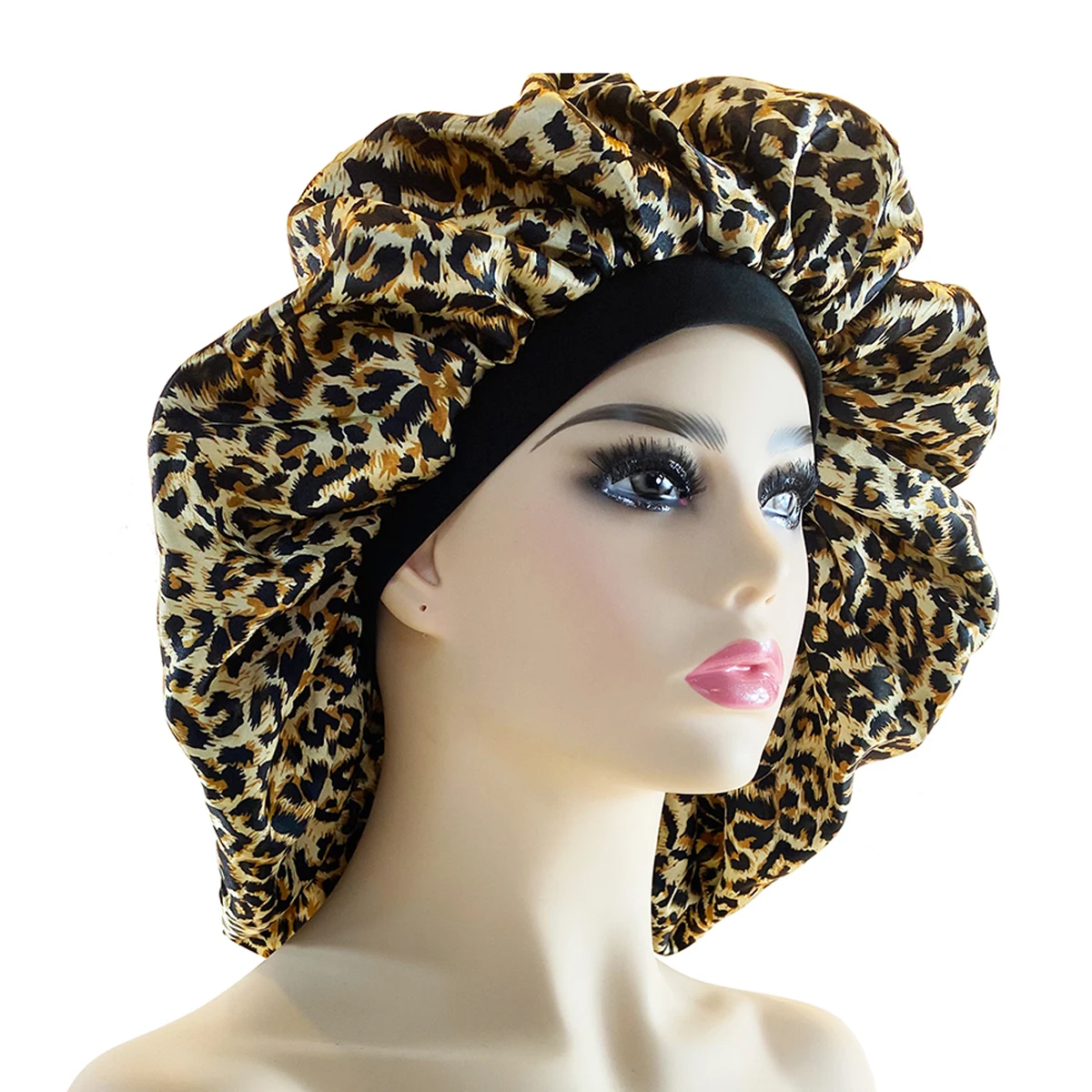 Супер Gi-ant шапочка для сна, шелковая шапочка для волос, cheveux nuit bonnets, головной убор, сатиновая широкая повязка для сна