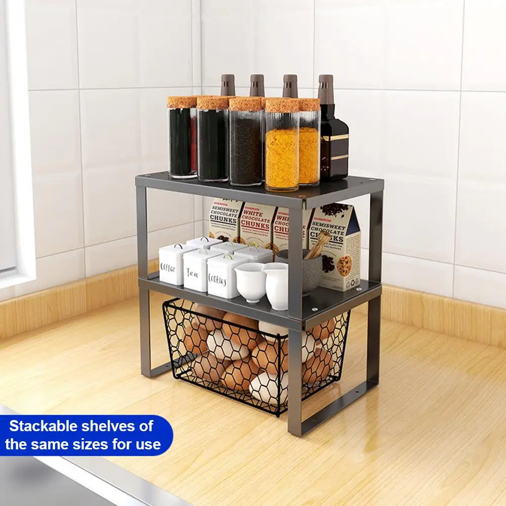 Органайзеры для шкафа из высокопрочной углеродистой стали, штабелируемые стеллажи для хранения с 4 силиконовыми противоскользящими накладками для кухни