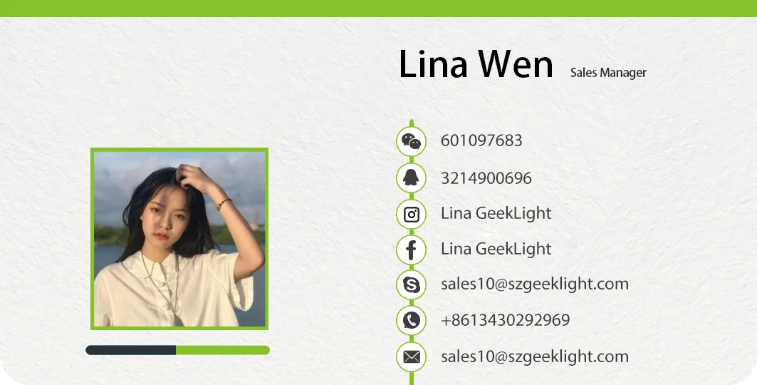 WeChat: 601097683 QQ: 3214900696 WhatsApp/Телефон: + 8613430292969 Инстаграмма: Lina GeekLight Facebook: Lina GeekLight Skype: sales10@szgeeklight.com Электронная почта: sales10@szgeeklight.com