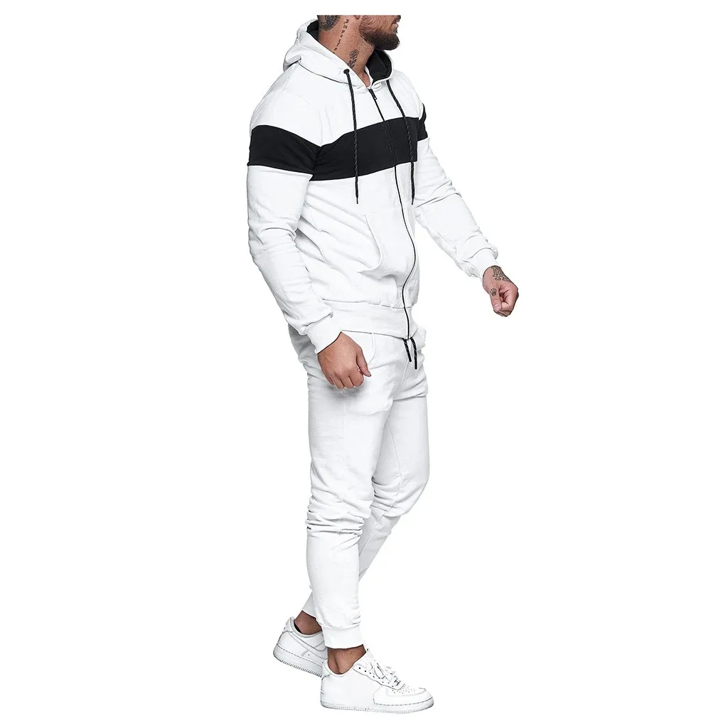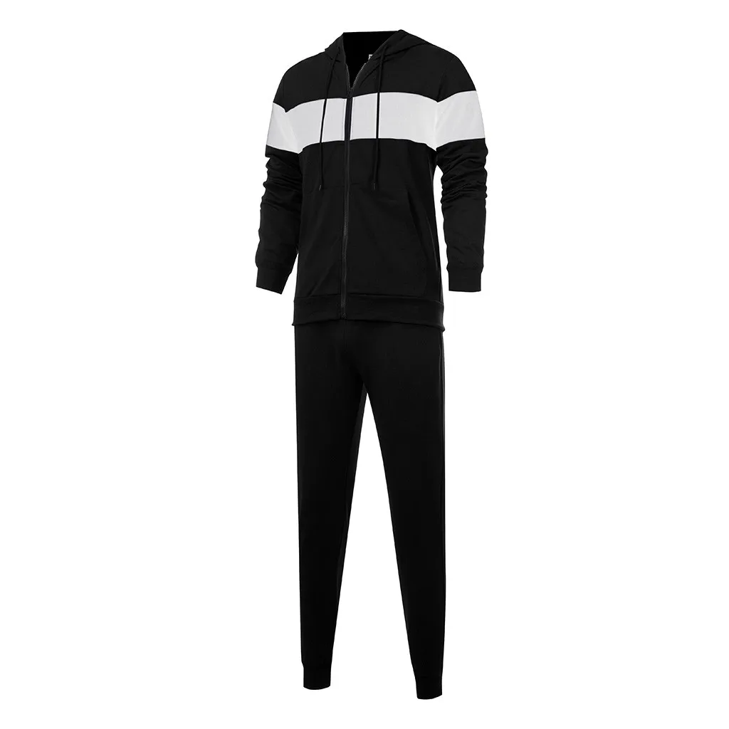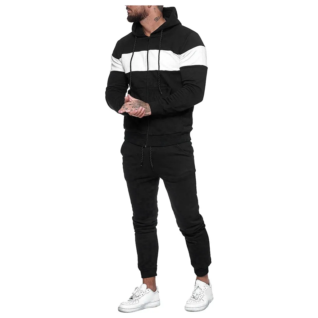 Отзывы о 2020 new Autumn and winter Men's Sets hoodies+Pants Harajuku Sport Suits Splicing Zipper Sweatshirt Top Pants Suit | Спорт и