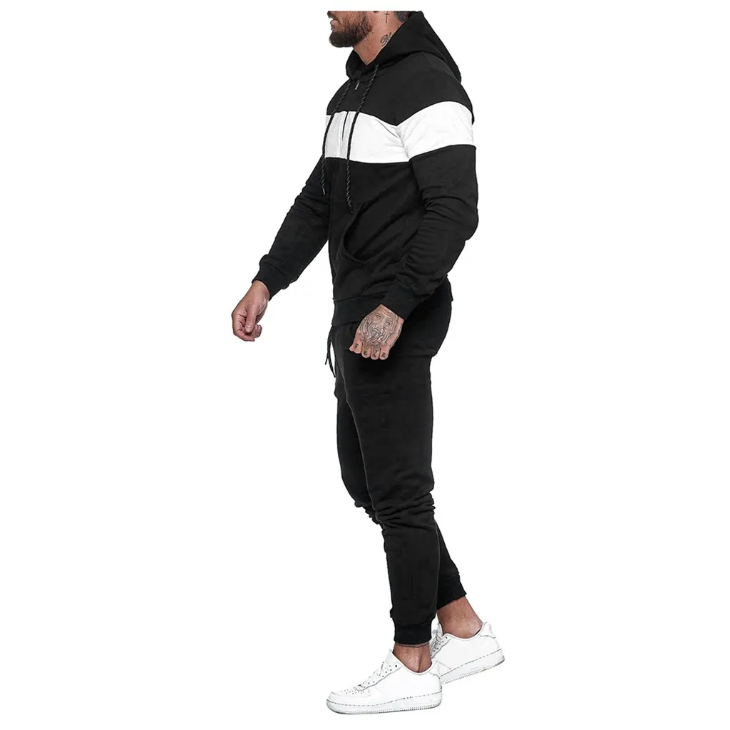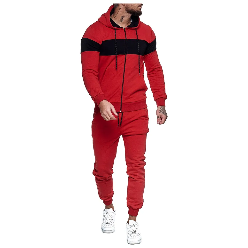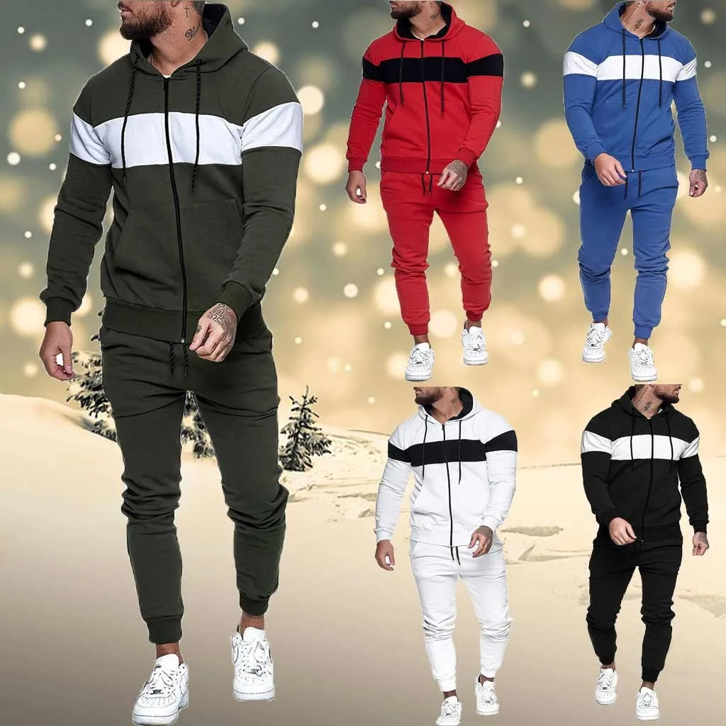 Отзывы о 2020 new Autumn and winter Men's Sets hoodies+Pants Harajuku Sport Suits Splicing Zipper Sweatshirt Top Pants Suit | Спорт и