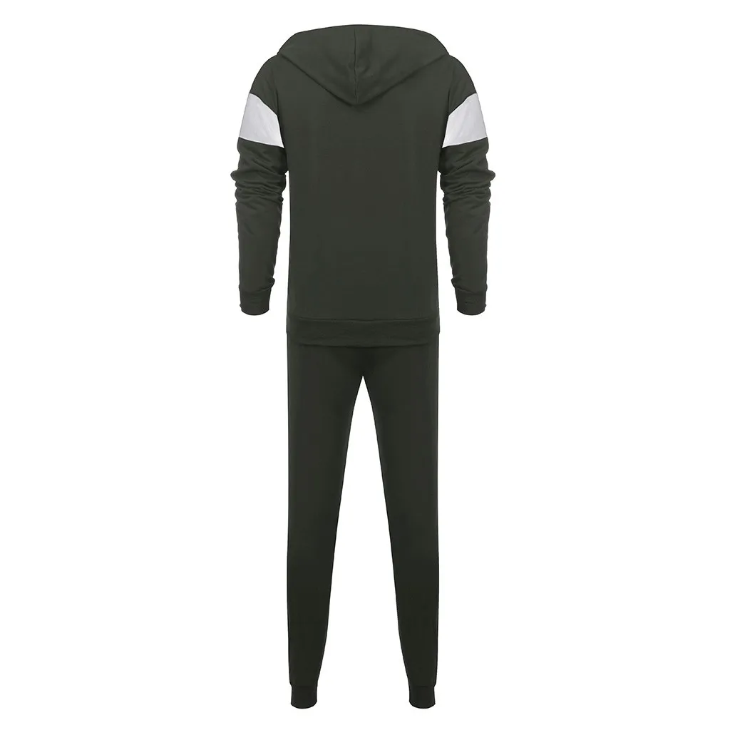 Mens Autumn Splicing Zipper Print Sweatshirt Top Pants Sets Sport Suit Tracksuit