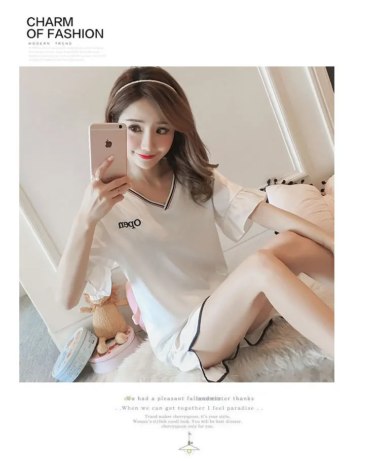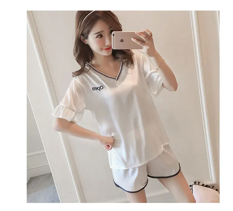 Отзывы о Женская тонкая Пижама с V-образным вырезом и коротким рукавом | одежда