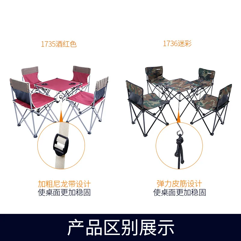 There are two five piece sets:One folding table + four folding chairs. The description is a five piece set. The reinforced binding on the camouflage and wine red tables is different. Please pay attention to the selection! If you have any questions, please consult online customer service~“