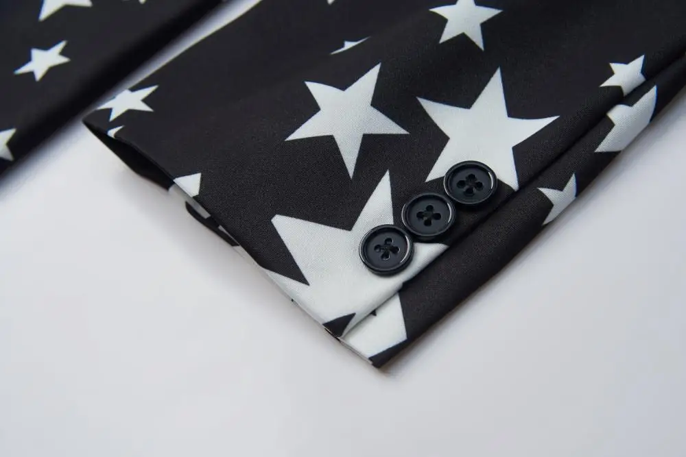 Отзывы о Приталенный костюм со звездным принтом куртка новинка 2020 мужской клубный