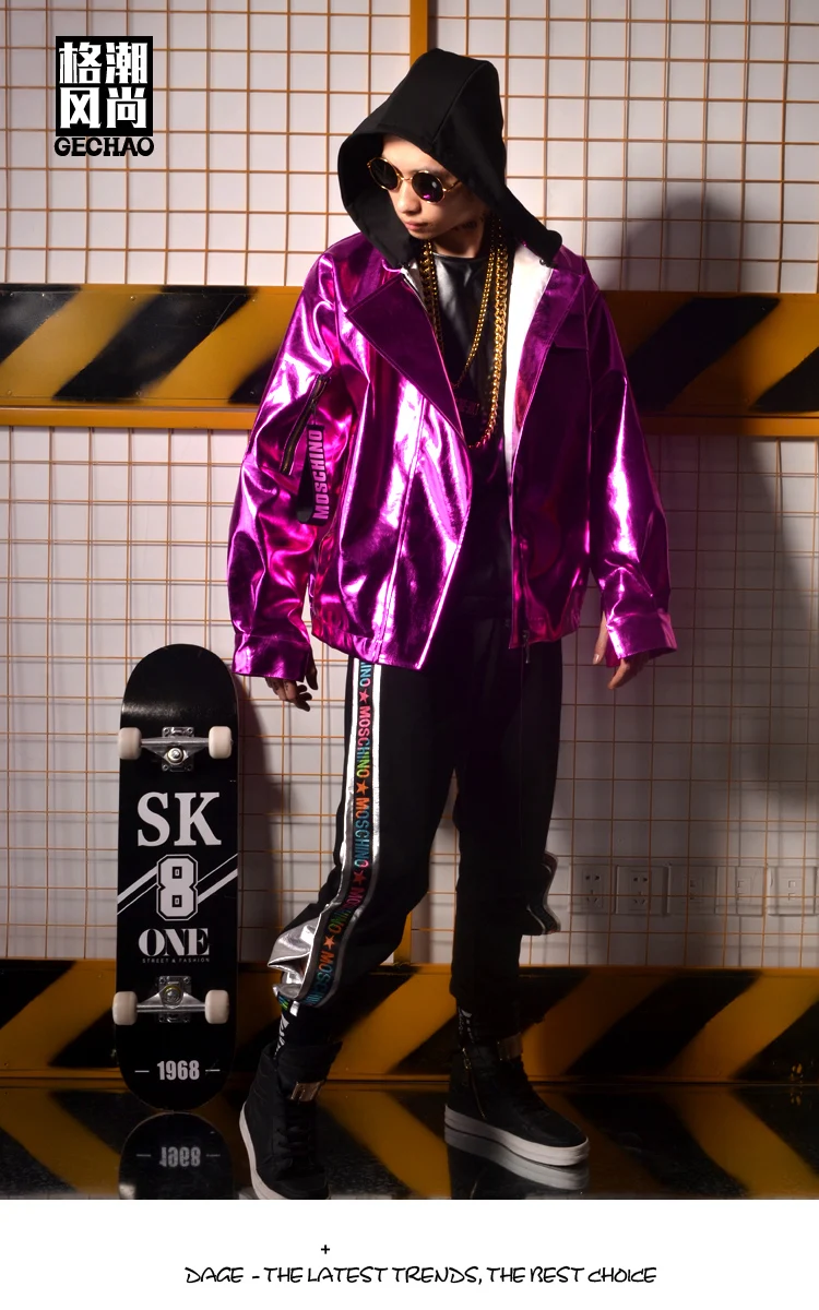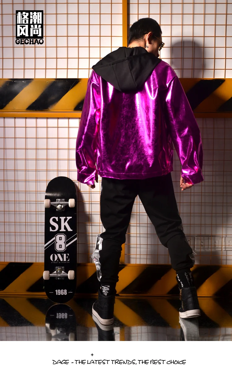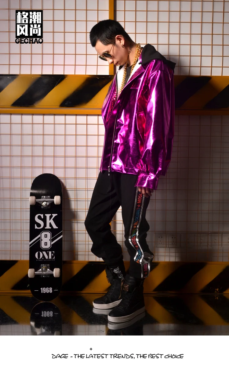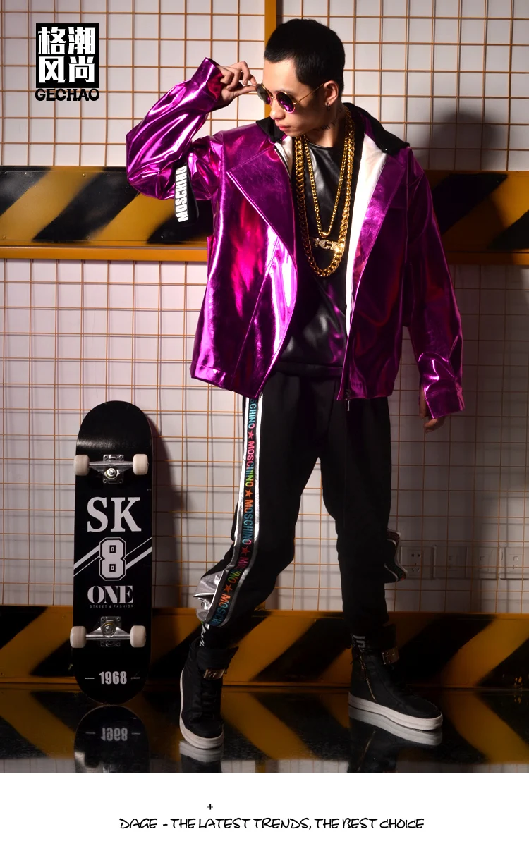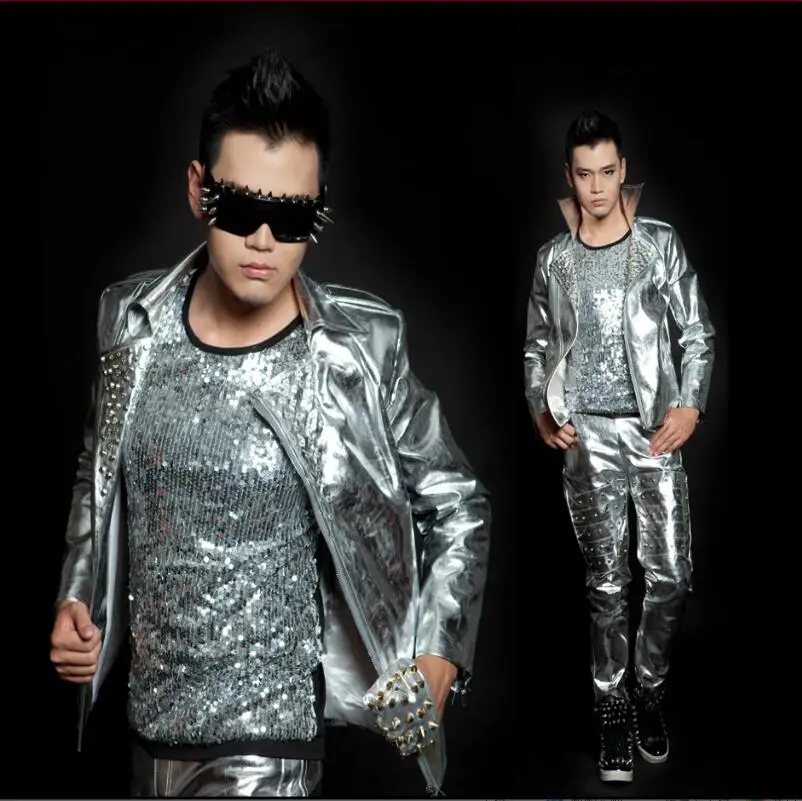 Отзывы о XS-5XL новинка Мужская одежда певец диджей GD Мода серебристые заклепки кожаная