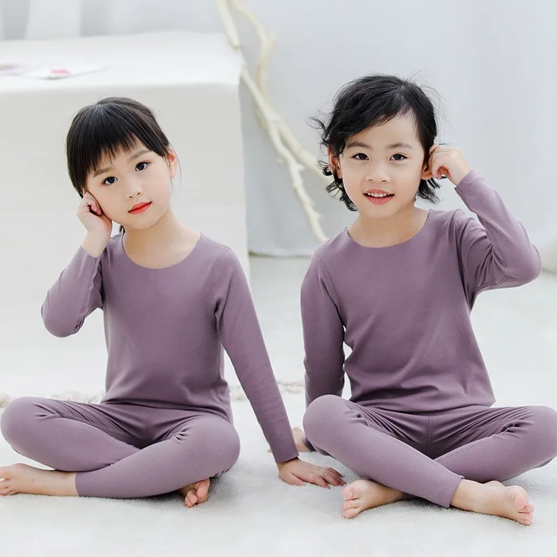 Детское термобелье; Сезон осень-зима однотонный Детский комплект из двух предметов; Теплая домашняя одежда; Пижама с длинными рукавами для девочек и мальчиков