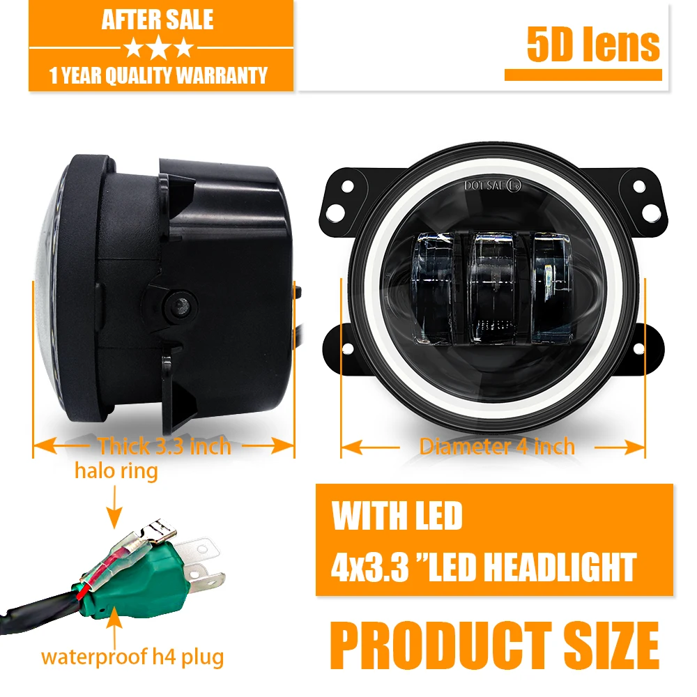 4 дюймовые круглые светодиодные противотуманные светильник головной светильник 30 Вт объектив проектора с Halo DRL лампа для бездорожья Jeep Wrangler Jk Dodge hummer H1
