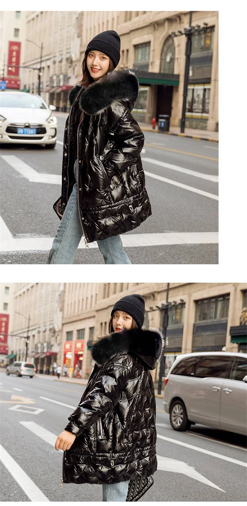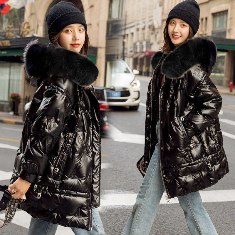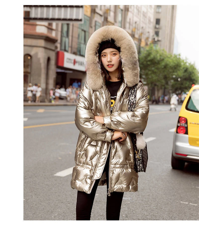 Отзывы о Зимняя длинная блестящая куртка с капюшоном для женщин теплые парки