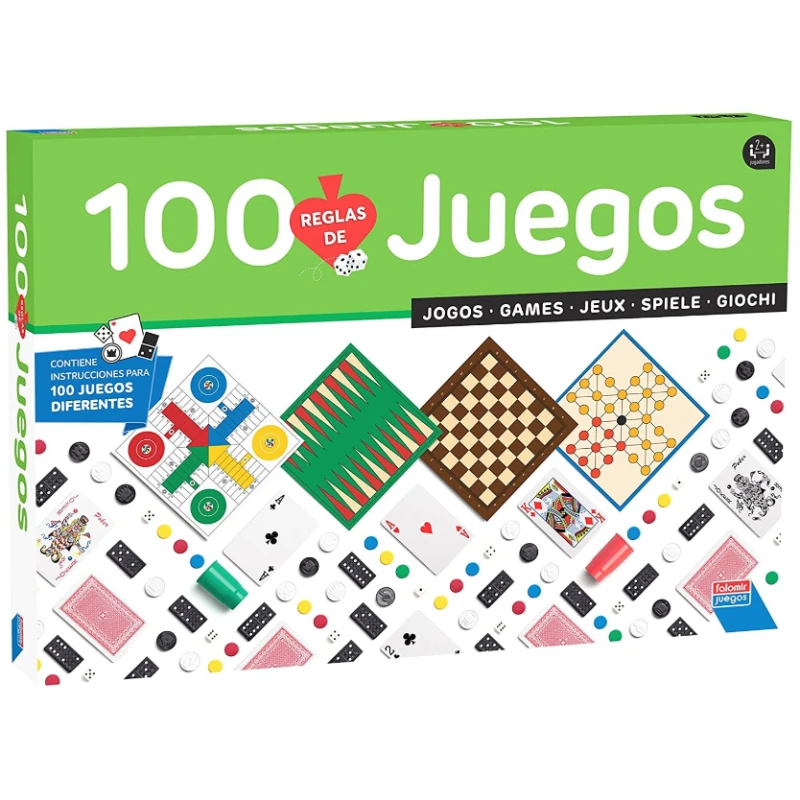 You can play parchís, checkers, chess, card games, dice, domino and up to 100 games. This game includes all the material needed to play the 100 games and you will find all your instructions in the book of regulations included in the box.