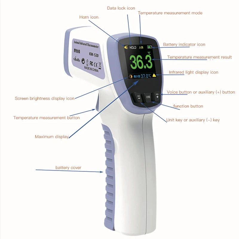 В 2020 году, новый флагманский Многофункциональный термометр для животных представлен в большом списке. Система полностью обновлена и более точна, поломав монотонный черно-белый экран и цветной экран. Это пятицветный цветной ЖК-экран высокой четкости с дисплеем батареи на экране. Есть инфракрасный лазерный светильник. Он может измерять животных, человеческие тела и предметы. Он также может отображать температуру в помещении! Этот ветеринарный термометр может не только измерять температуру, но и сканировать несколько частей для получения (наивысшее значение, среднее значение и низкое значение) это эквивалентно сканирующий прибор! При измерении объекта вы также можете настроить частоту соответствующего объекта. Яркость дисплея может быть скорректирована. Вы можете немедленно просмотреть 20 наборов значений температуры памяти самых последних измерений температуры!