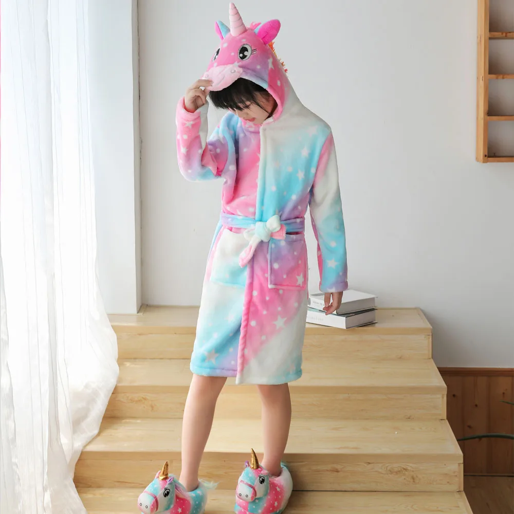 Осенне-зимний банный халат с единорогом для детей-подростков
