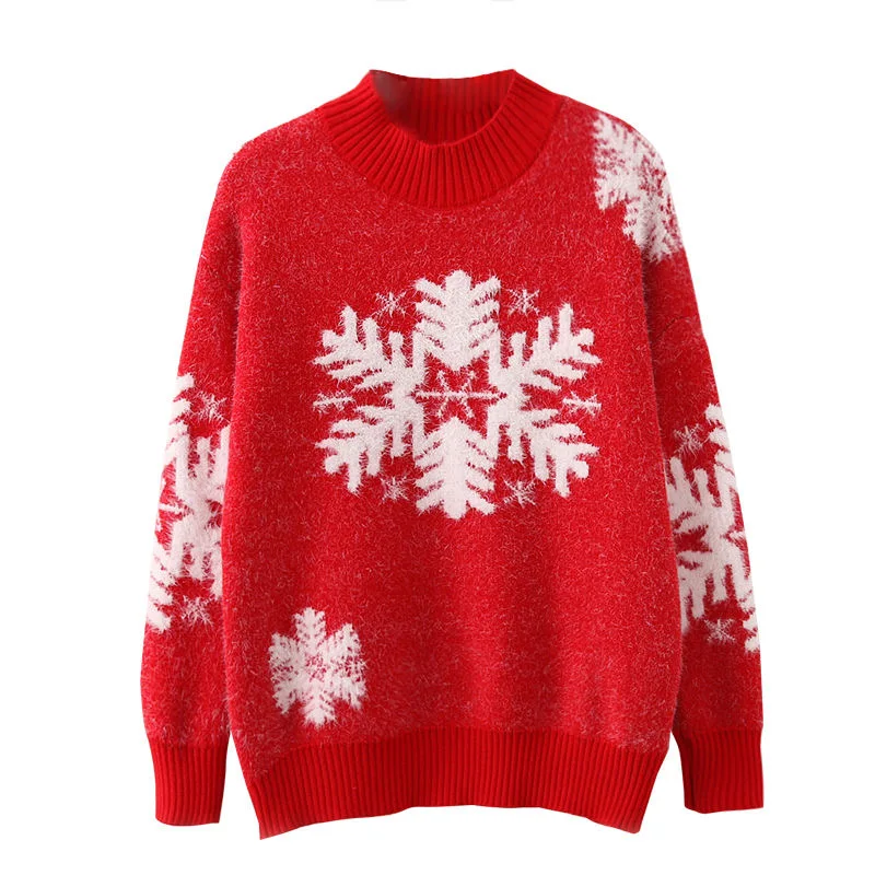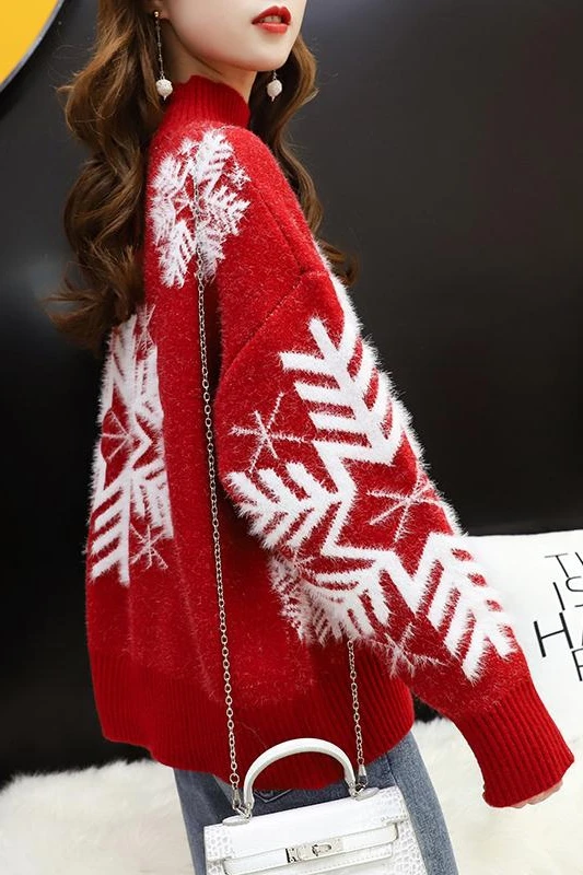 Отзывы о Женский Рождественский свитер Sifafos красный вязаный пуловер с длинным рукавом и