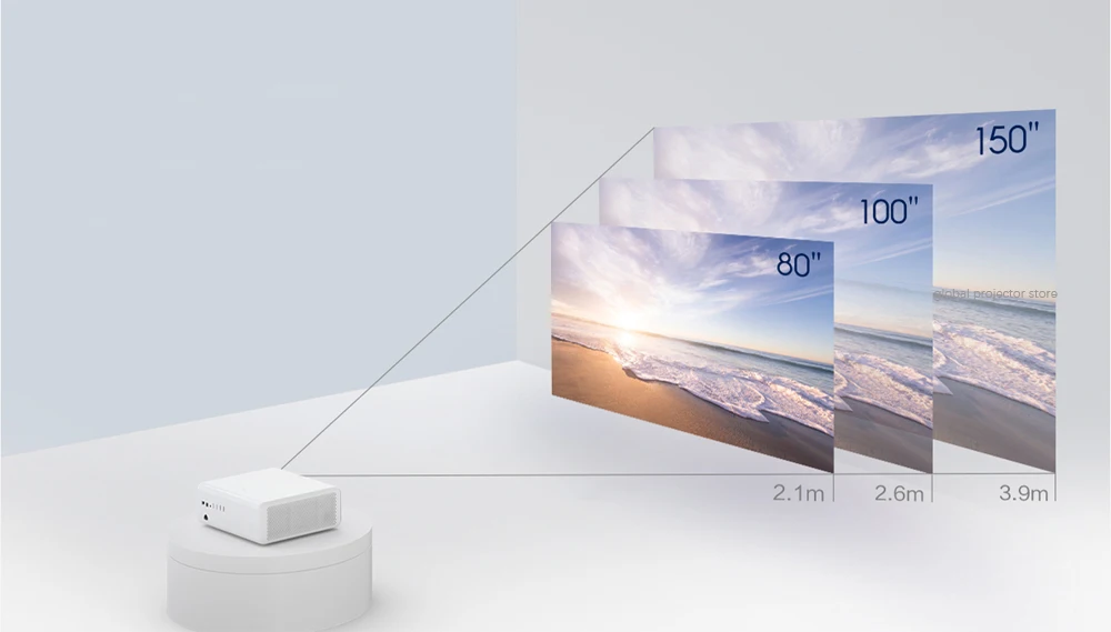 Лучший размер экрана: 50-150 дюйма.