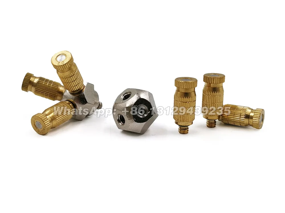 Отверстие Диаметр: 0,1 мм до 0,5 мм Рабочее давление: 60-80 бар Материал корпуса: SS304/316, латунь Материал отверстия: ss, керамика и рубин Входная резьба: 10/24, 12/24, 3/16 и 1/8 Насадки для контроля влажности на рынках пиломатериалов, целлюлозы и бумаги и теплиц, теплоизоляция для животных, птицы и людей в теплых климатических зонах, контроль запаха на местах отходов, турбинная запотевание для увеличения энергопотребления, противопожарные системы, охлаждение животных, фермы, подавление пыли, контроль запаха, теплица, микромистинг, Наружное охлаждение, увлажнение и т. д.