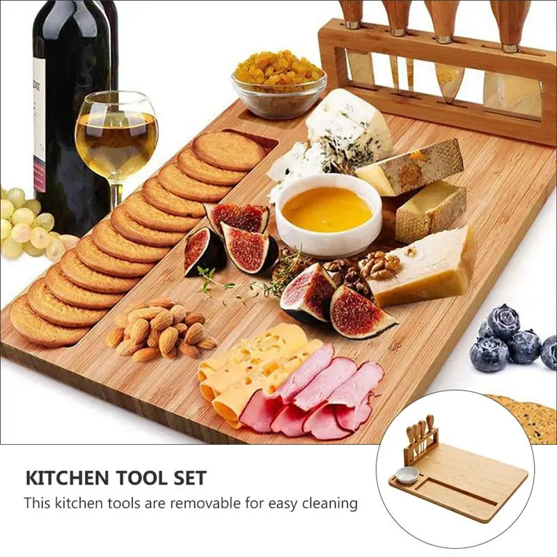 ОписаниеЭто набор разделочных досок и ножей инструменты, которые изготовлены из высококачественного материала, долговечного в использовании. Благодаря многоразовому использованию, этот инструмент используется для много раз. Поставляется с чашей для приправ, ножами для сыра, очень комплектный и удобный. Они являются хорошим помощником для свежей руки, чтобы нарезать и готовить вкусную еду.