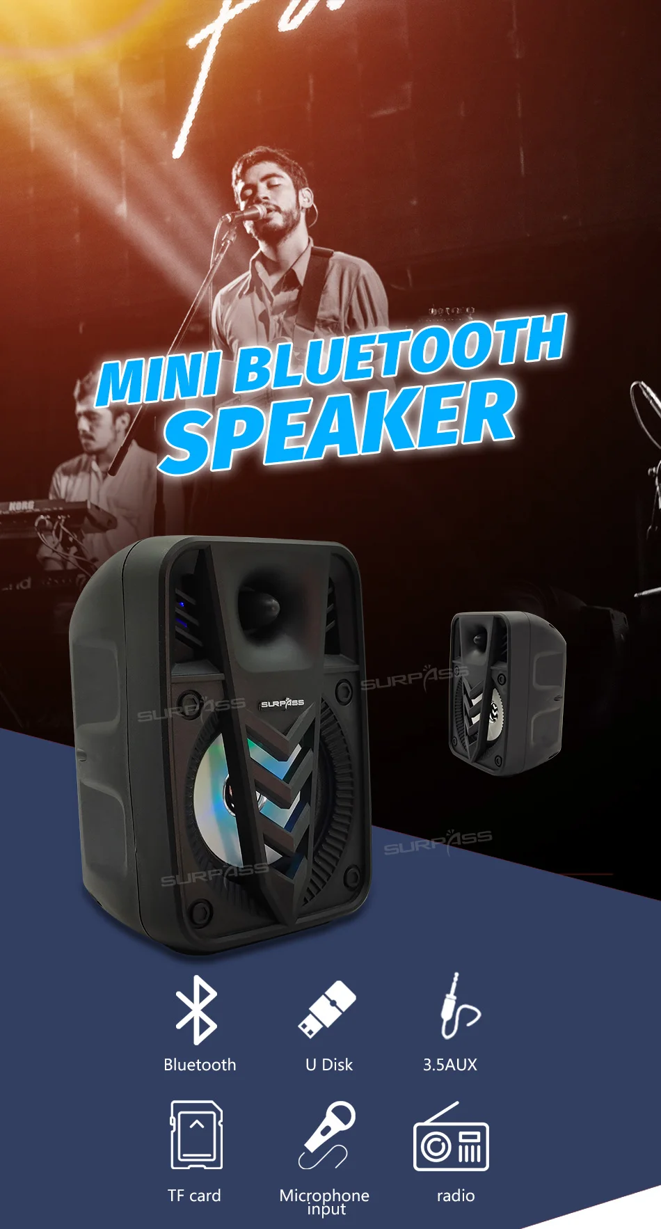 >Функция:Bluetooth/TFКарта/USBДиск/3,5AUXВ/Fm-радио