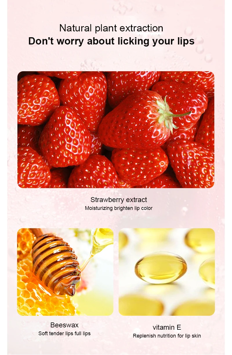 Экстракт натуральных растений, клубники, меда, витамина Е, безопасный и полезный, нежный и не раздражающий, влажный, но не жирный.