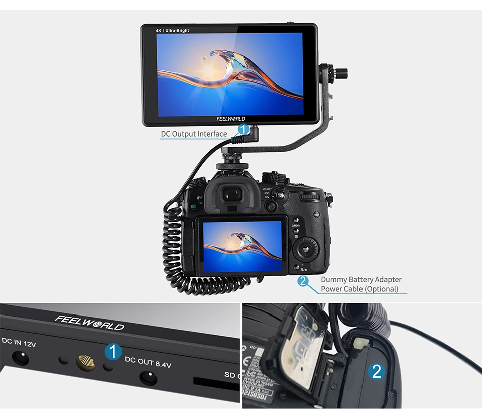 The LUT6 is an ideal camera-top monitor for DSLR and mirrorless camera shooters. Because the LUT6 provides auxiliary power out; allowing shooters to power their cameras. With a battery adapter cable (Optional), the LUT6 extends camera run-time, while providing a more usable display.