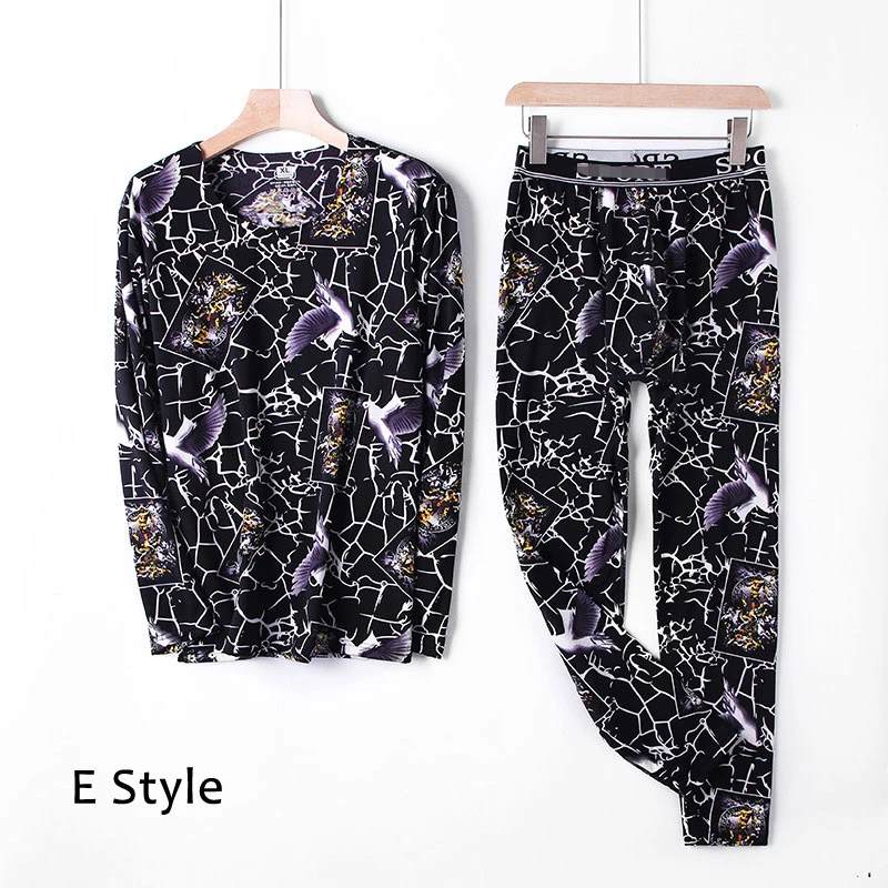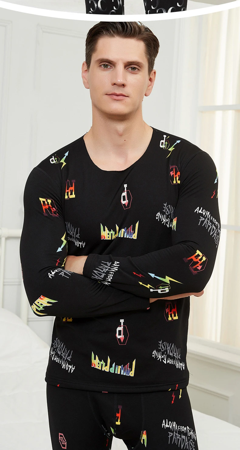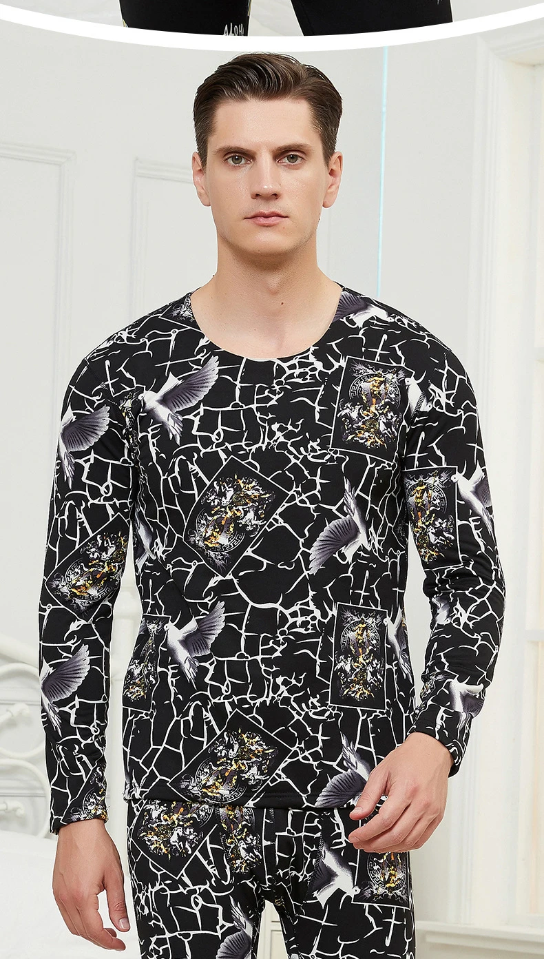 Модное термобелье для мужчин, бесшовное, круглый вырез, тонкий бархат, с принтом, зимняя одежда для мужчин, сохраняет тепло, мужское термобелье