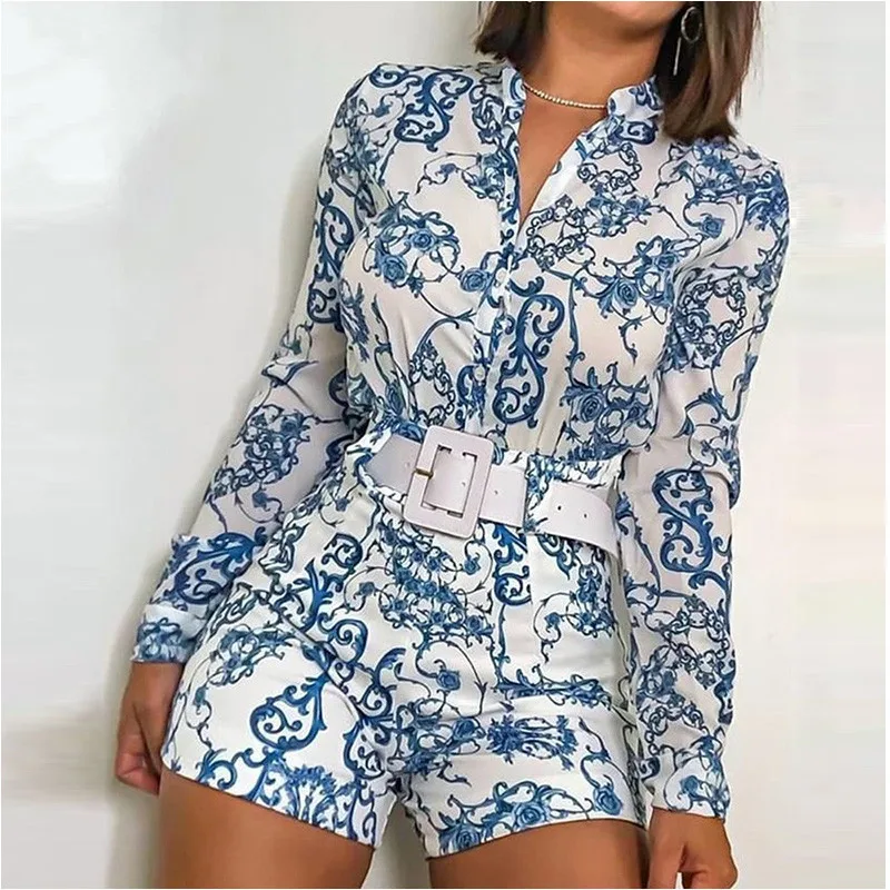 Отзывы о Весна-лето женская рубашка с длинным рукавом и v-образным вырезом шорты комплект