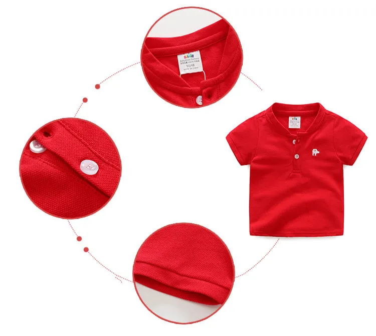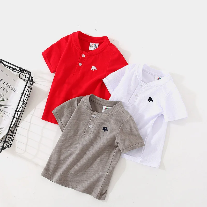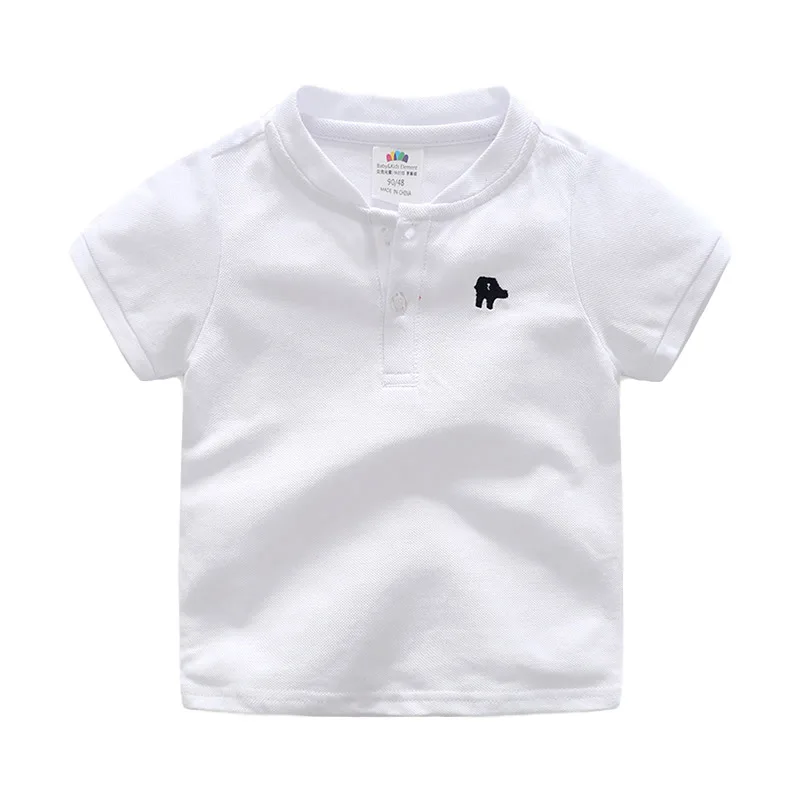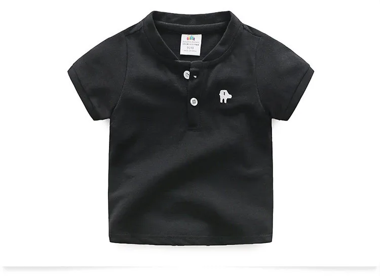 Лидер продаж; Летняя Модная хлопковая Футболка с вышивкой и короткими рукавами; Воротник «Мандарин»; Красивая Однотонная футболка с v-образным вырезом для маленьких мальчиков