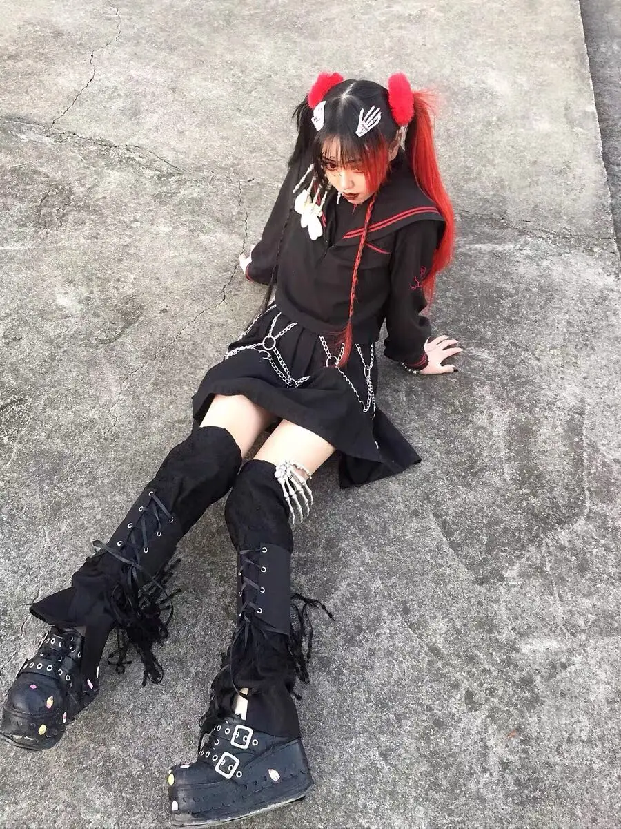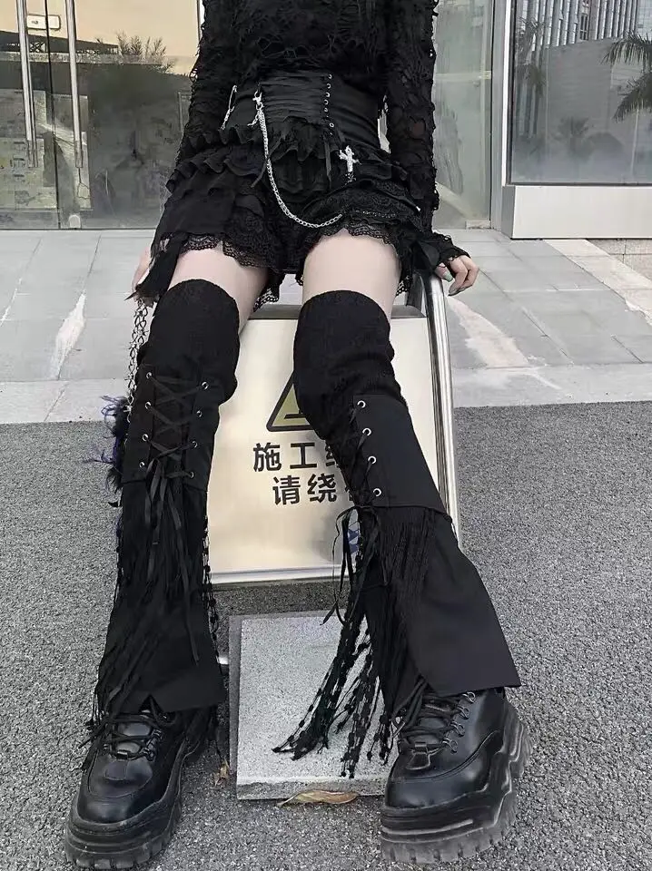 Отзывы о Ruibbit Punk Gothic lace-up Harajuku Japanese over the Knee Leg Warmer Foot Sock black flare knee sleeve Cover | Женская одежда