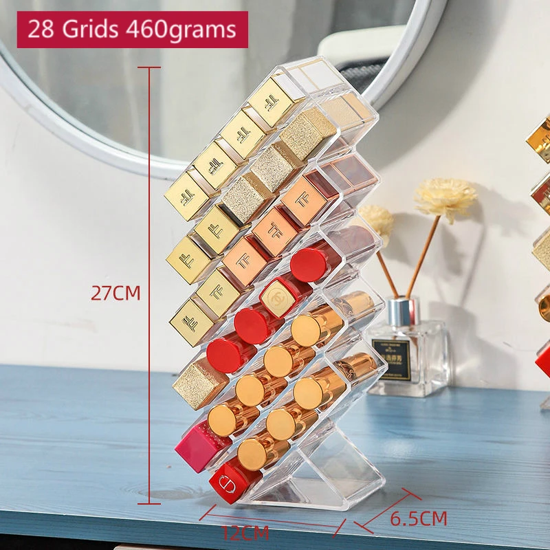 Прозрачная коробка для хранения губной помады, 28 сеток, акриловый Органайзер для макияжа, полка для косметики, настольный туалетный столик, в стиле рыбий хвост
