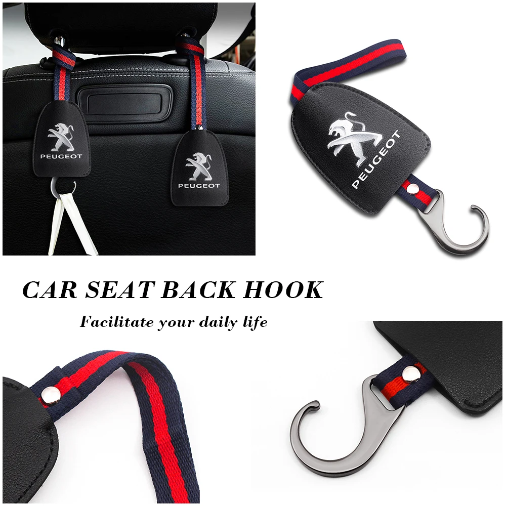 Кожаная Автомобильная вешалка на подголовник крючок на спинку сиденья дюйма, крючок для внутренней сумки для PEUGEOT 206 207 308 307 107 108 407 508 2008 RCZ