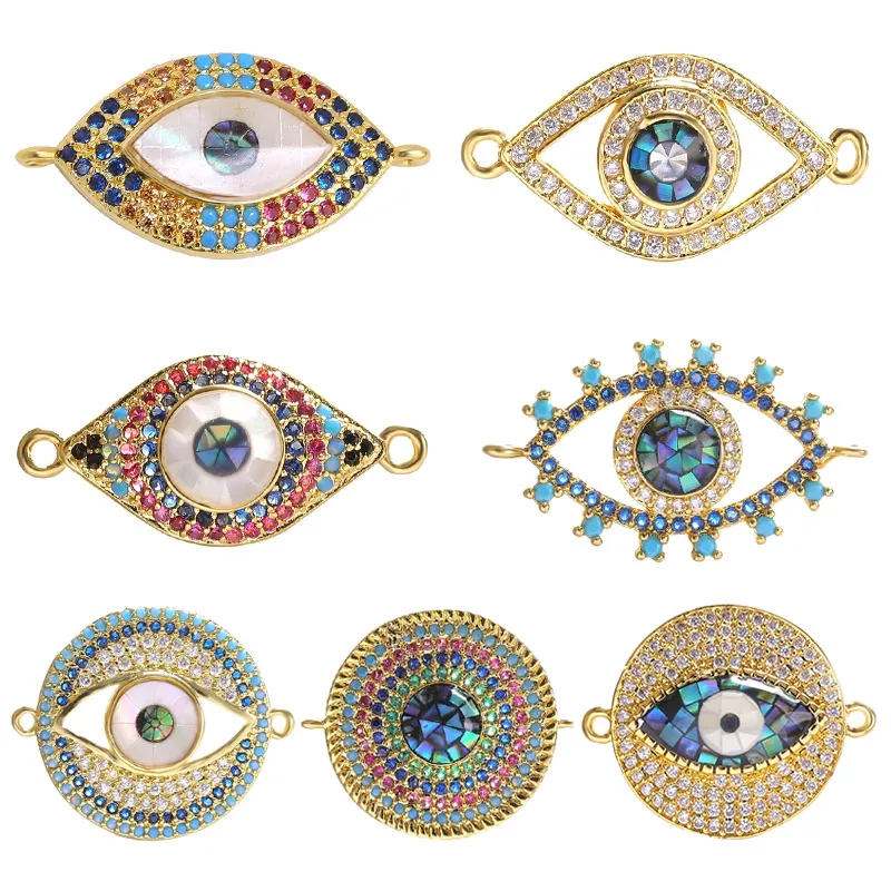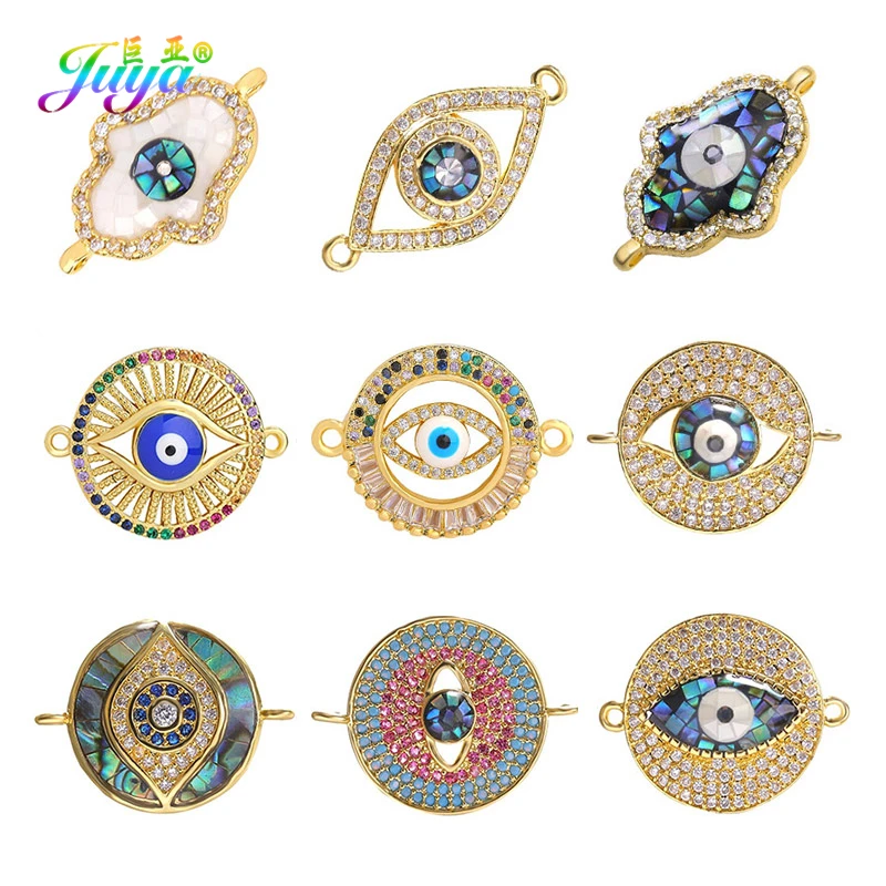 Juya DIY турецкий повезло глаз для изготовления ювелирных изделий, золото, раковина абалона, греческий сглаза разъемы для вручную на заказ; Очарование браслет и оптовые продажи