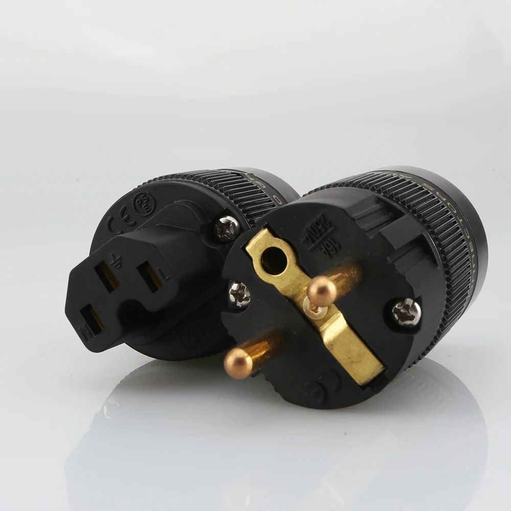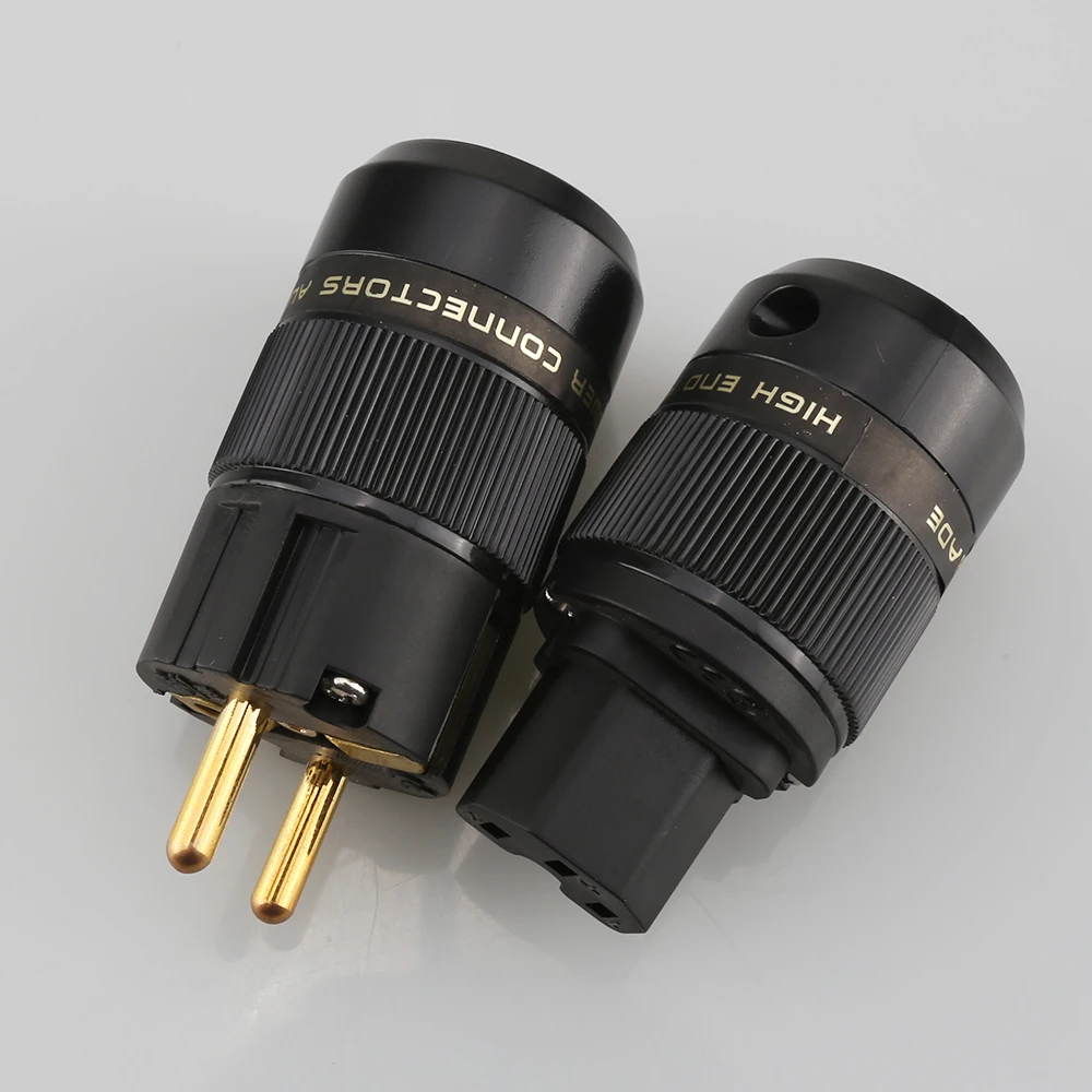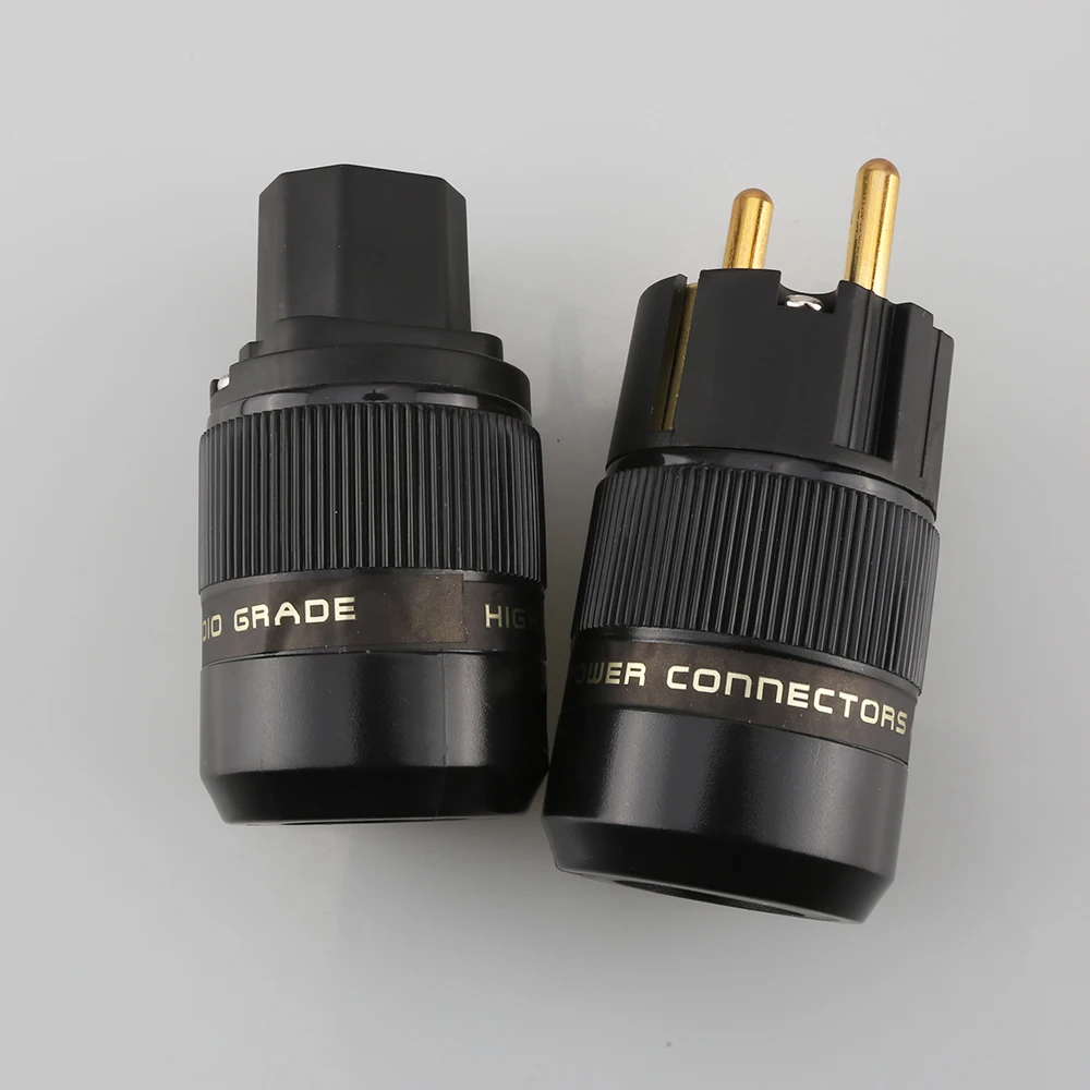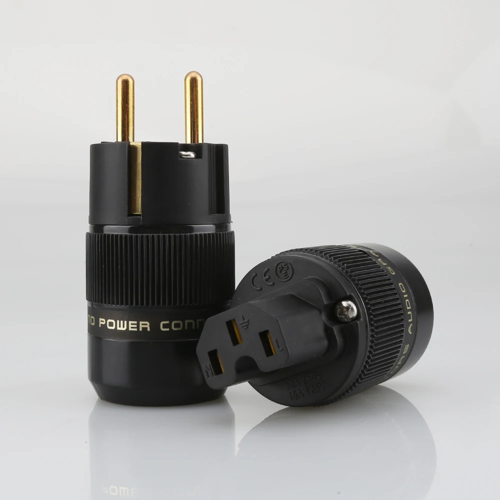 Одна пара высококлассных 24K позолоченных штекеров питания переменного тока Schuko + разъем питания IEC аудио адаптер питания
