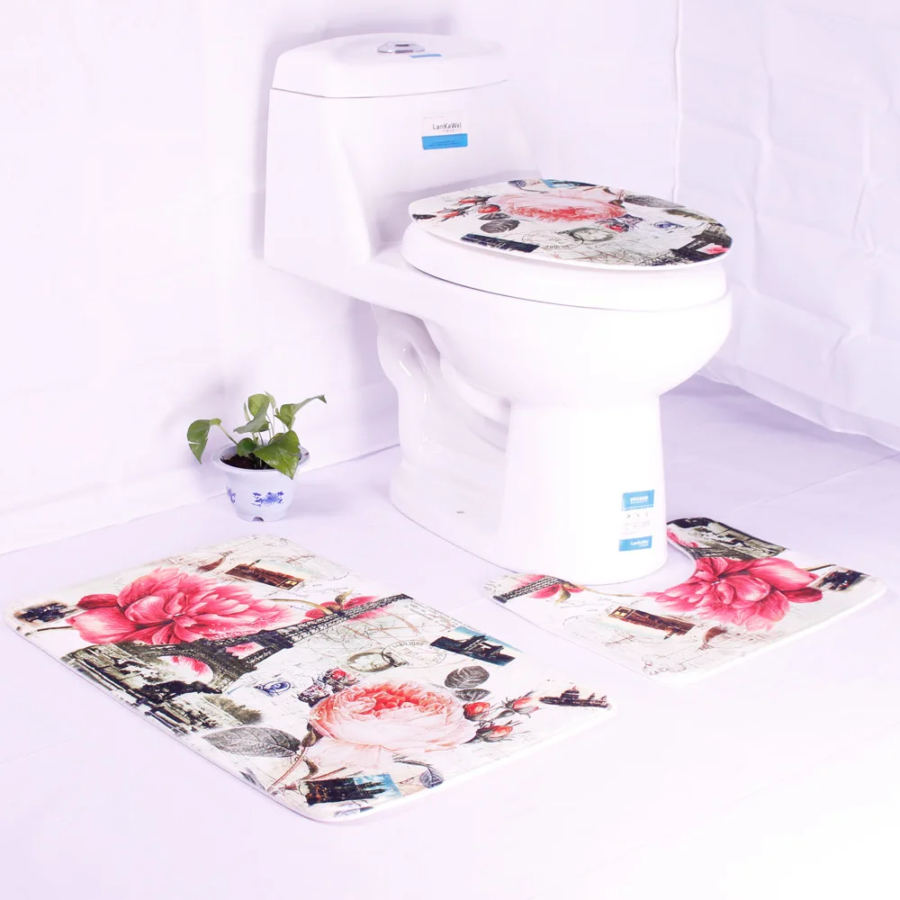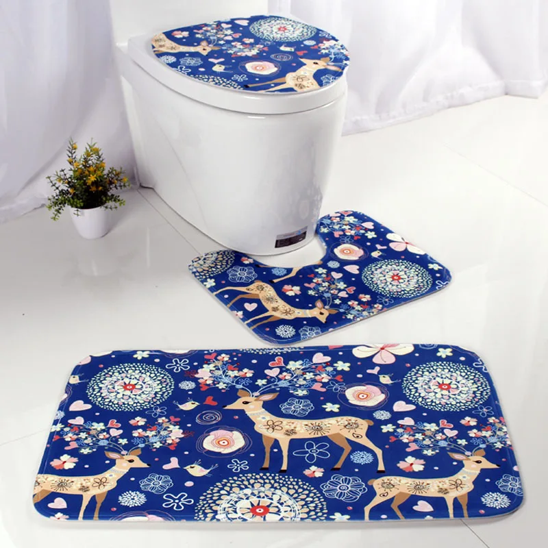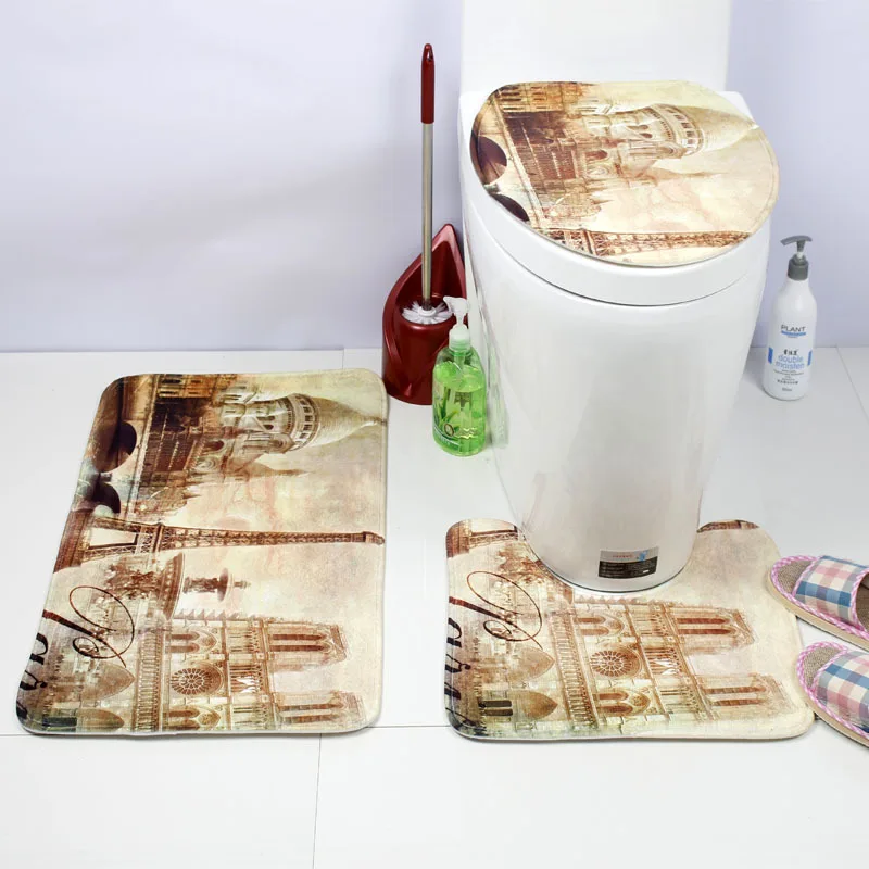 Параметры продукта Название: комплект из 3 предметов для унитаза и ванной комнаты Материал: фланель Размер: как показано Вес: как показано Цвет как показаноПроцесс: цифровая печать