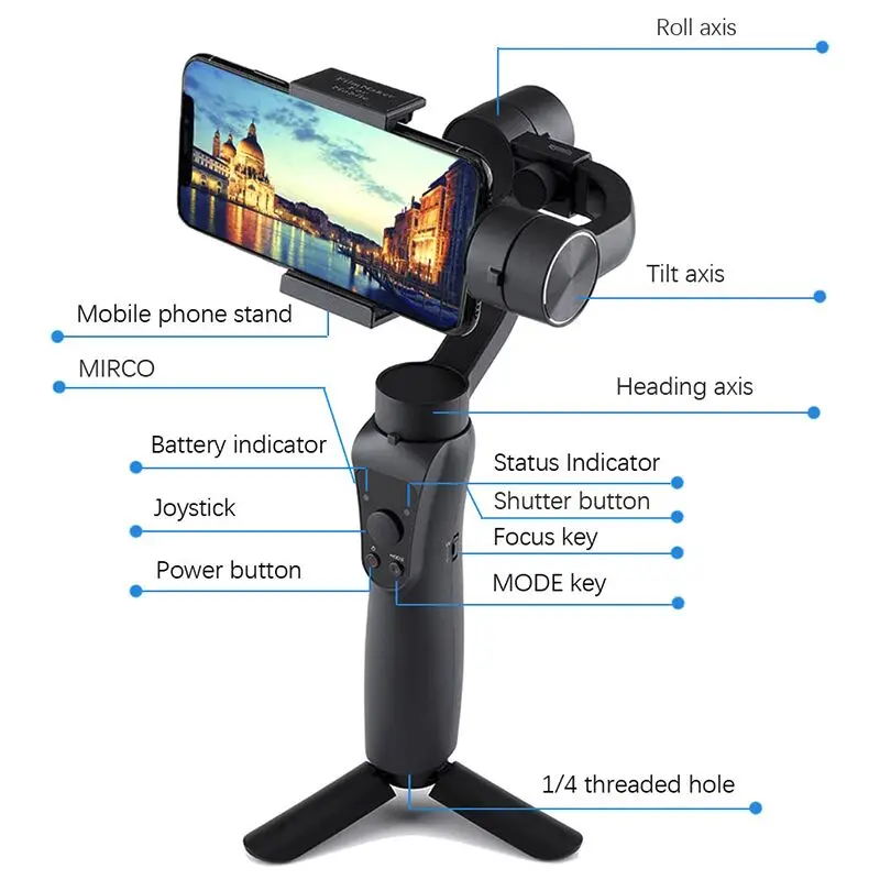Стабилизатор S5 можно заряжать с помощью портативного питания или 5 в постоянного тока. И телефон может
