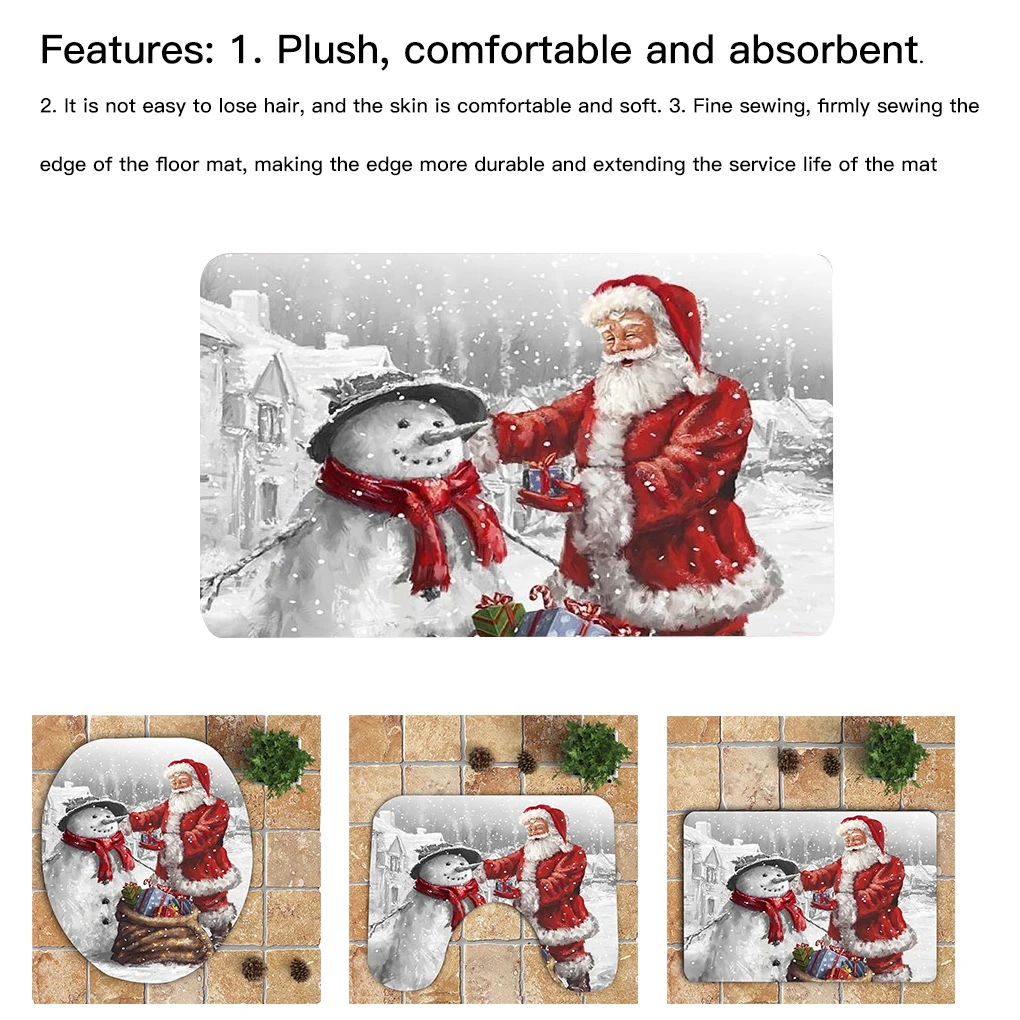 Отзывы о High Quality 3PCS/Set Toilet Seat Cover Mat Floor Carpet Set Christmas Bathroom Coral Velvet Non-slip | Дом и сад