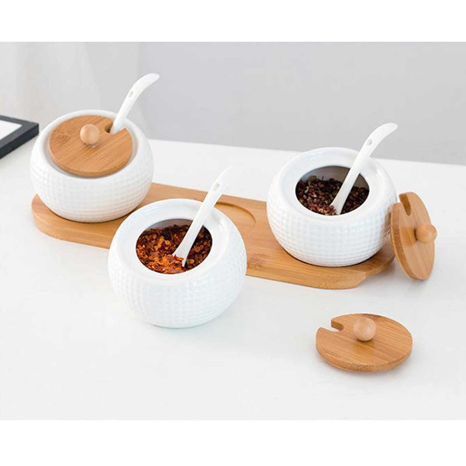 Отзывы о Condiment Pots Sugar Jar Bowls with Spoon and Bamboo Lid Ceramic Seasoning Box | Дом и сад