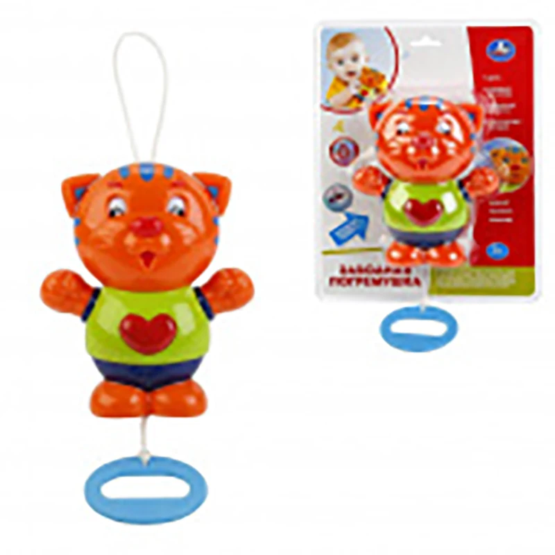 Она выполнена в ярких цветах, которые привлекут внимание малыша. Заводной механизм легко приводится в действие: ребёнку достаточно потянуть за удобную ручку и вытянуть верёвочку. После этого у тигрёнка начинают двигаться ушки и глазки.