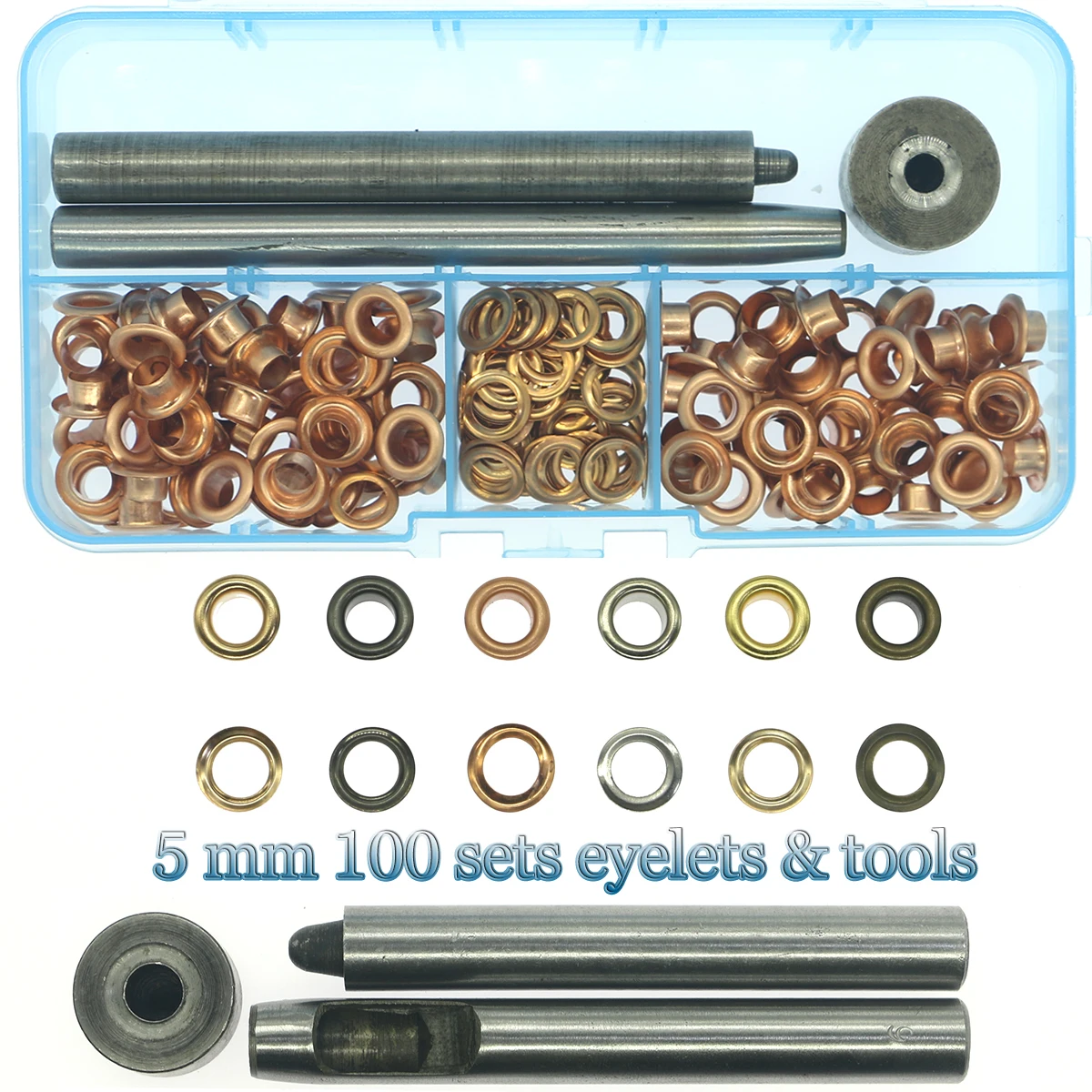 Новинка 200 шт внутренний диаметр 6 мм Металлические Люверсы + инструмент для установки отверстий медные простые пряжки для обуви занавес одежды с чехлом инструмент USD 24,5/Шт/Партия 1