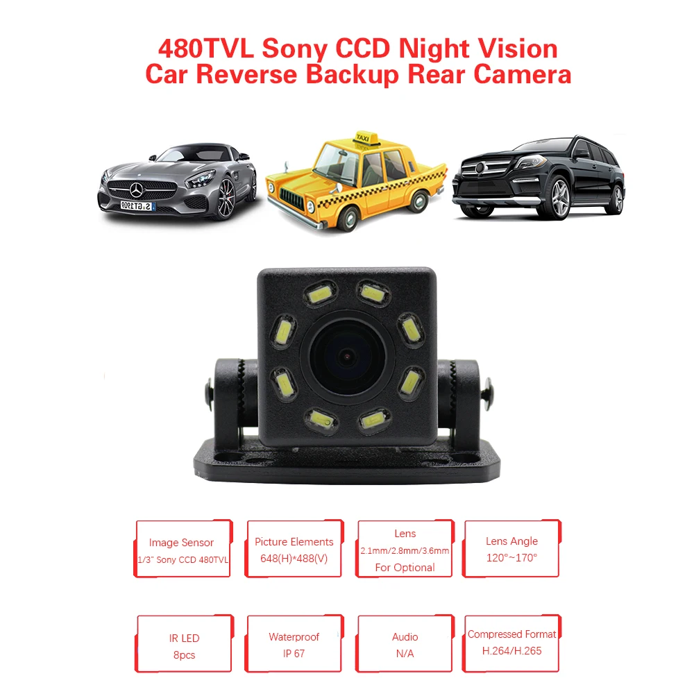 Отзывы о Уличная камера 480tvl Sony CCD 8 LED ночного видения водонепроницаемая автомобильная