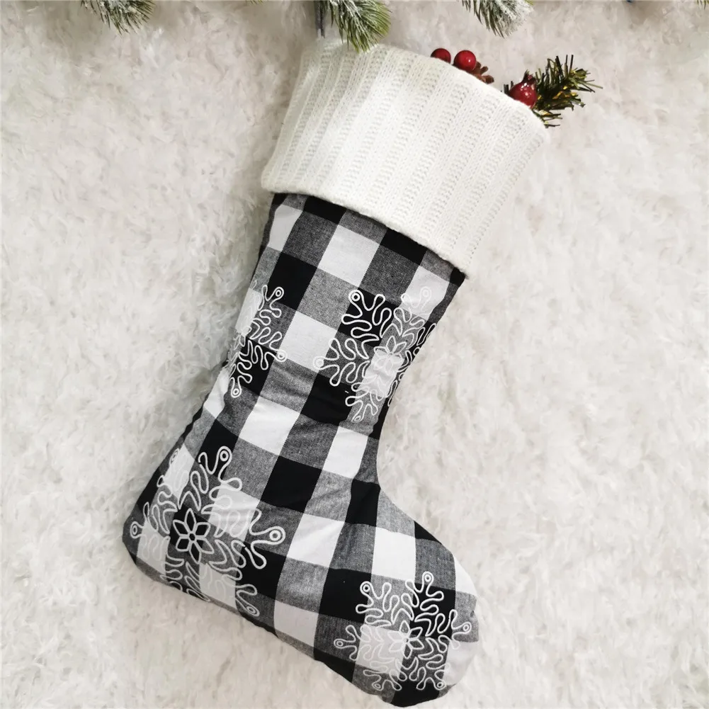 Рождественские чулки, деревенский клетчатый Гольфы с изображением снежинок с вязаными манжетами для украшения дома и офиса