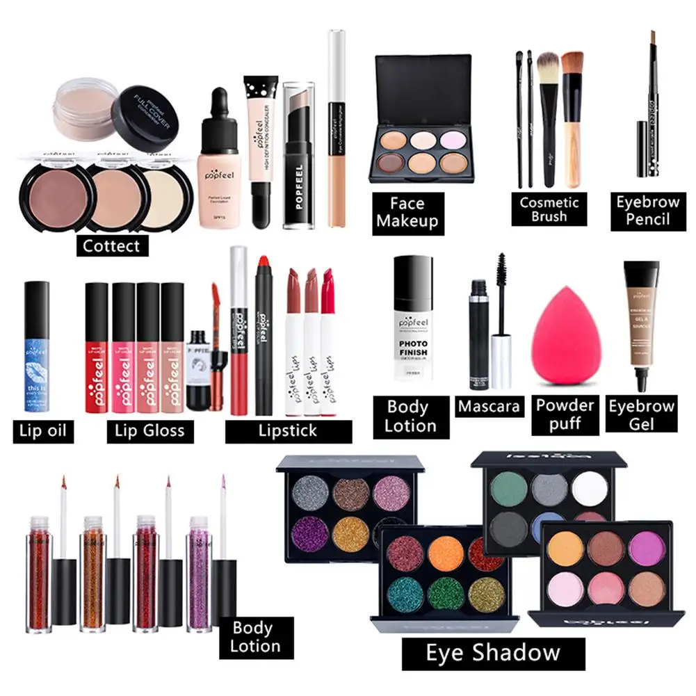 1. Комплектное оборудование: первичный набор для макияжа, комплектное оборудование, удобно носить с собой, высокое качество, безопасность и надежность.2. Удовлетворяет ваши потребности: содержит разноцветные матовые тени для век и блестящие тени для век, блеск для губ, крем для бровей, ручка для макияжа, консилер, крем для век и т. д., чтобы удовлетворить ваши ежедневные потребности в макияже.