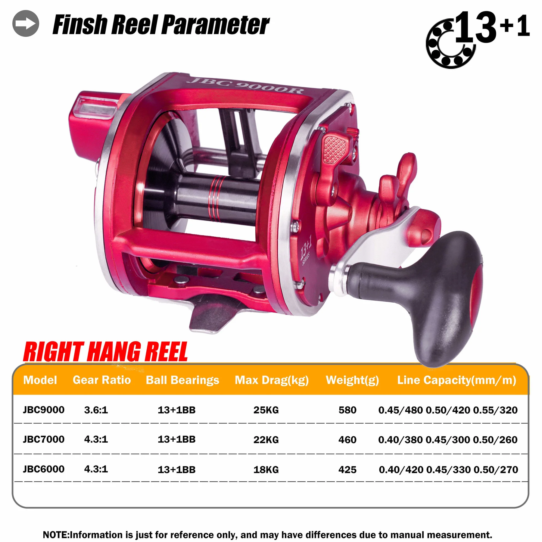 Правый красный JBC9000 | Вес: 580g | Шестерни передаточное число: 3,6: 1 | Подшипника: 13 + 1 | Максимальная сила натяжения: 25 кг | Линия Ёмкость (мм-М): 0,45/480 0,50/420 0,55/320