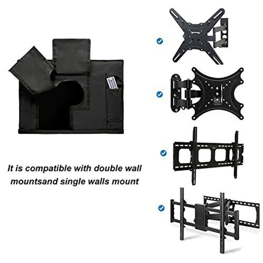 Измерение крышки телевизора: (L)38x(W)24 x (TH) 4,5 дюймов Подходит для размера ТВ-экрана до: 36 ~ 38 дюймов Материал: Оксфорд ПВХ 600D Цвет: черный Стиль/Регулировка: плоская/фиксированная, наклонная, наклонная и поворотная, полное движение Рисунок: однотонный