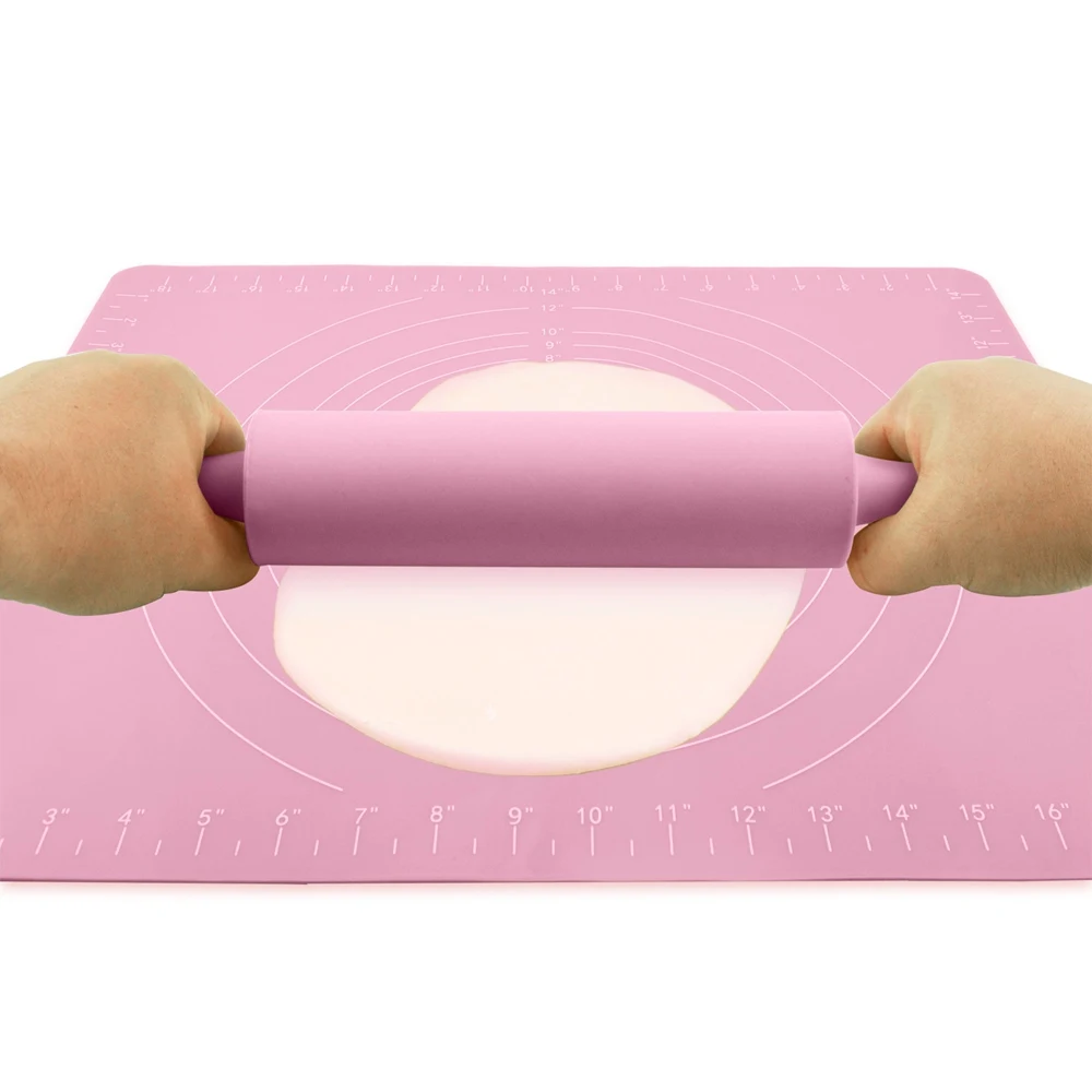 【 Пищевое оборудование для выпечки 】силиконовая Скалка и silpat коврик изготовлены из бесконтактного сырья BPA. Силиконовая скалка не трескается или не плеснеется, как деревянная, что делает пищевую обработку более безопасной и здоровой. Антипригарный прочный кондитерский коврик может сделать вашу еду безопасной и духовой, он подходит для приготовления пиццы, печенья, пирожного теста, торта, хлеба и многого другого.