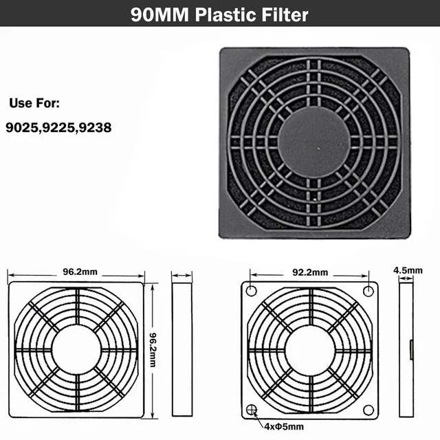 Фильтр вентилятора для домашнего компьютера, вентилятора шасси, динамика, 3D-принтера и других электрических и электронных устройств. Нейлоновый пыленепроницаемый фильтр вентилятора, эффективность до 89%, позволяет компонентам ПК и ПК быть чистыми и продлить их срок службы. Изготовлен из высококачественной АБС-смолы, огнестойкий, термостойкий и моющийся, может быть переочищен много раз. Этот гриль может минимизировать шум вентилятора и обеспечить вам бесшумную жилью и рабочую среду. Простая установка всего за 6 шагов, вы можете установить его на вентилятор или другую электронику. Доступны размеры 120 мм, 90 мм, 80 мм, 60 мм, 50 мм и 40 мм по выбору
