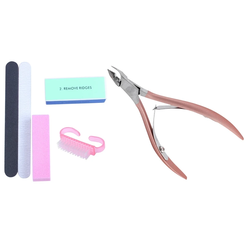 Отзывы о 5Pcs Nail Set Polishing Tofu Block Article Manicure Kit with Cuticle Pusher Tweezer Cutter Nipper Pink | Красота и здоровье