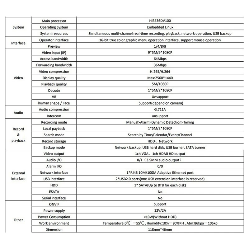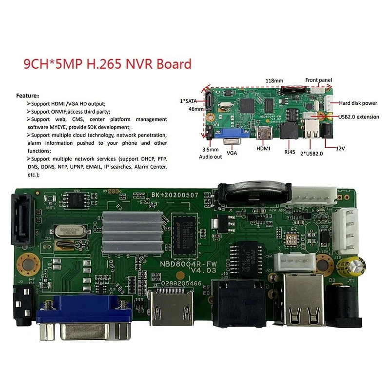Отзывы о Плата ONVIF H.265 9CHx5MP поддержка сетевого цифрового видеорегистратора 1 SATA NVR Max 8 ТБ XMEYE