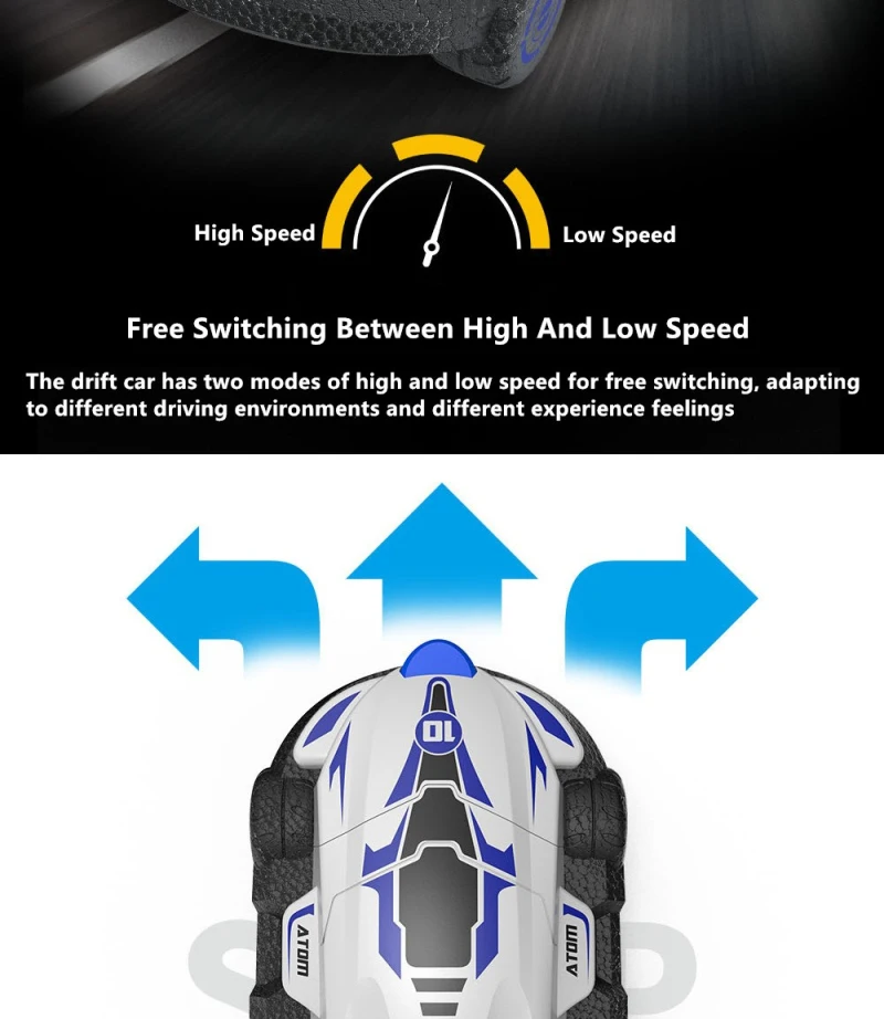 Свободное переключение между высокими и низкими скоростями, drift car имеет два режима высокой и низкой скорости для свободного переключения, адаптируясь к различным условиям вождения и различным ощущениям