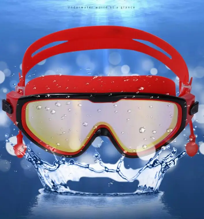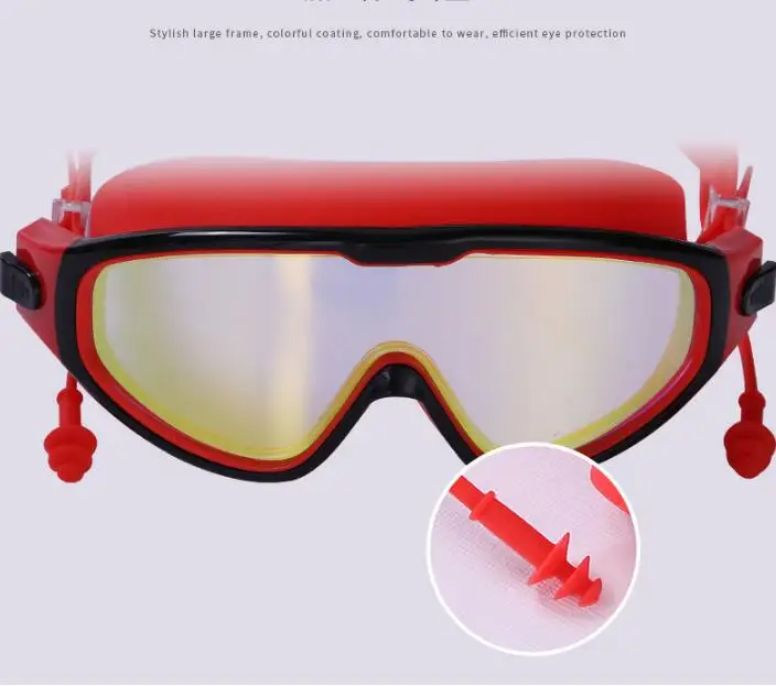 Adjustable Adult Swimming Goggles Anti-Fog Diving Eyewear UV Protection Silicone Big Frame Swim Glasses with Earplugs