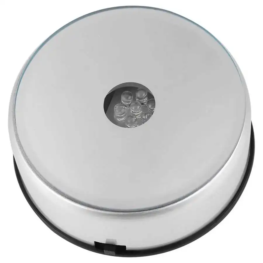 LED Colorful Light Rotating Crystal Display Base Stand Holder with AC US Adapter Silver