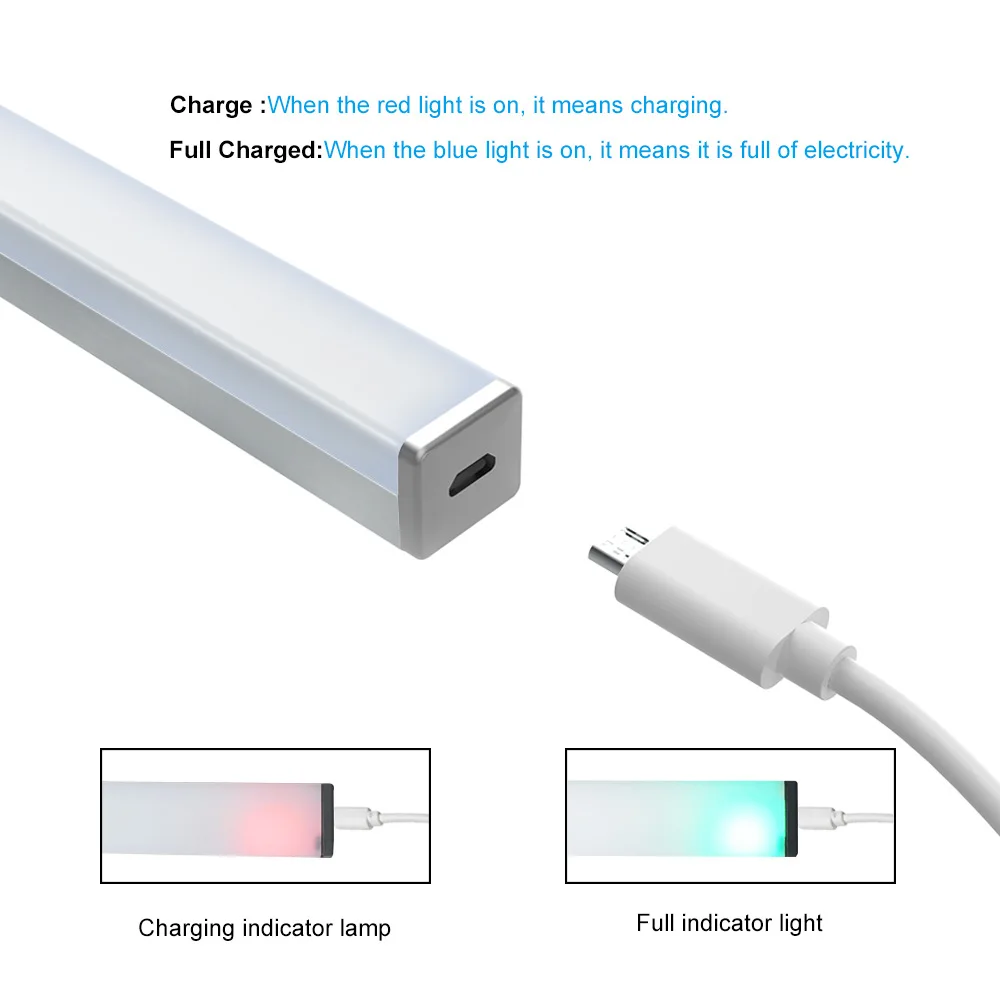 Светодиодов, подсветка под шкафом, USB, перезаряжаемый светильник для шкафа, датчик движения, ночсветильник для лестницы, гардероба, кухонного шкафа